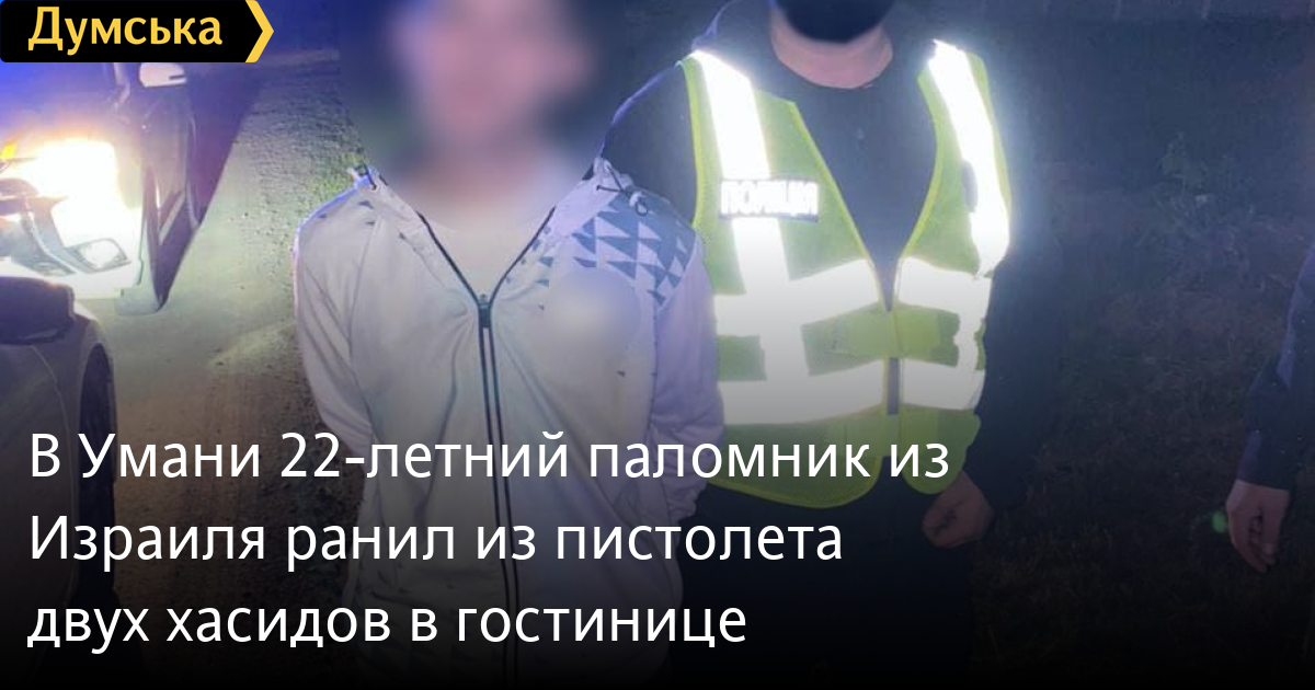 В Умани 22-летний паломник из Израиля ранил из пистолета двух хасидов в гостиницеВ Умани 22-летний паломник, приехавший из Израиля, был задержан после того, как устроил стрельбу в гостинице на улице Софьи Перовской в Умани. Об этом сообщает Нацполиция в Черкасской области. Уточняется, что накануне стрелок повздорил с двумя постояльцами в отеле. Словесная перепалка закончилась тем, что гражданин Израиля достал пистолет и стал стрелять по оппонентам. Пострадавших пришлось госпитализировать в больницу. Один из них был ранен в руку, второй – в область грудной клетки. Их жизни сейчас ничего не угрожает. Злоумышленник после инцидента скрылся и пытался спрятаться от правоохранителей в городе. После осмотра места происшествия, сбора вещдоков и опроса свидетелей личность нарушителя была установлена. Мужчину вскоре разыскали и задержали в порядке ст.208 Уголовного Кодекса. Открыто уголовное дело, ведомости внесены в Единый реестр досудебных расследований по ч.4 ст.296. За хулиганство с применением оружия подозреваемому грозит от трех до семи лет лишения свободы. Расследование продолжается, оперативники устанавливают обстоятельства происшествия. Решается вопрос об избрании меры пресечения для фигуранта под руководством прокуратуры, ему готовятся вручить подозрение. СМЕРТЬ РОССИЙСКИМ ОККУПАНТАМ! Заметили ошибку? Выделяйте слова с ошибкой и нажимайте control-enter Новости по этой теме: 12 января 2022: Харьковские станции метро ожидает масштабная проверка: в вестибюле подземки на площади Конституции рухнул потолок (фото) 8 января 2022: В Одессе из офиса фирмы выкрали сейф с внушительной суммой денег, золотом и пистолетом 27 декабря 2021: В лесополосе под Киевом нашли тело главврача из Ровенской области: по подозрению в убийстве задержаны таксист с приятелем 23 декабря 2021: В Киеве задержали подозреваемых мошенников, которые обманывали на свиданиях мужчин ради денег |