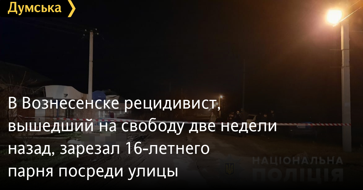 В Вознесенске рецидивист, вышедший на свободу две недели назад, зарезал 16-летнего парня посреди улицыПоздним вечером 4 апреля, в Вознесенске Николаевской области ранее судимый за убийство мужчина смертельно ранил ножом 16-летнего парня. Об этом сообщили в пресс-службе Нацполиции в Николаевской области. Там отметили, что около 22:30 на спецлинию 102 поступила информация от медицинского работника о том, что в Вознесенске возле одного из магазинов неизвестный нанес ножевое ранение в сердце 16-летнему парню, от которого тот скончался на месте. Прибывшие на место происшествия правоохранители просмотрели записи с камер видеонаблюдения магазина и установили мужчину, который, по словам очевидцев, был причастен к преступлению. В ходе принятых оперативных мер при силовой поддержке бойцов роты полиции особого назначения правоохранители задержали 30-летнего жителя Вознесенская у него дома через несколько часов после убийства. Выяснилось, что злоумышленник только две недели назад освободился из мест лишения свободы, где находился за умышленное убийство, а отбывая наказание, еще и был осужден за нанесение в колонии тяжких телесных повреждений, повлекших смерть. Оказалось, что вечером возле магазина, находясь в состоянии опьянения, он цеплялся к посетителям и в ходе конфликта нанес удар ножом в грудь несовершеннолетнему парню, свидетелями чего стали местные жители. Следователи задержали злоумышленника и объявили ему о подозрении в совершении преступления, предусмотренного ч. 1 ст. 115 (умышленное убийство) УК Украины. Санкция статьи предусматривает наказание в виде лишения свободы на срок от семи до 15 лет. В ближайшее время суд изберет мужчине меру пресечения. СМЕРТЬ РОССИЙСКИМ ОККУПАНТАМ! Заметили ошибку? Выделяйте слова с ошибкой и нажимайте control-enter |