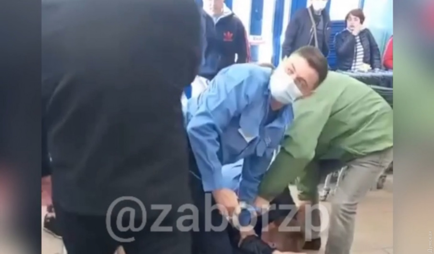 В Запорожье нетрезвые покупатели без масок затеяли драку с охраной супермаркетаТрое посетителей супермаркета «АТБ» в Запорожье устроили разборки с охраной после того, как их попросили надеть маски. Об этом сообщил «ZаБор», выложив в сеть видео с места происшествия. На кадрах видно, как покупатели бросались на охранников с кулаками и били их ногами. В свою очередь, охрана повалила дебоширов на пол, пытаясь скрутить. По словам свидетелей, трое молодых мужчин пришли в магазин «навеселе» за дополнительной выпивкой. При этом все трое были без защитных средств, а на кассе к тому же оказалось, что и денег расплатиться за товар у них тоже не было. Когда охрана попыталась разобраться с нарушителями, они без лишних слов ринулись в бой. В итоге все закончилось тем, что парням просто пришлось покинуть заведение. Отметим, что это уже не первый за последние сутки подобный инцидент. Ранее мы рассказывали, что в Мариуполе мужчина с топором разгромил супермаркет из-за обидчиков его жены, которая не хотела надеть маску. Кстати, происшествие тоже случилось в «АТБ».