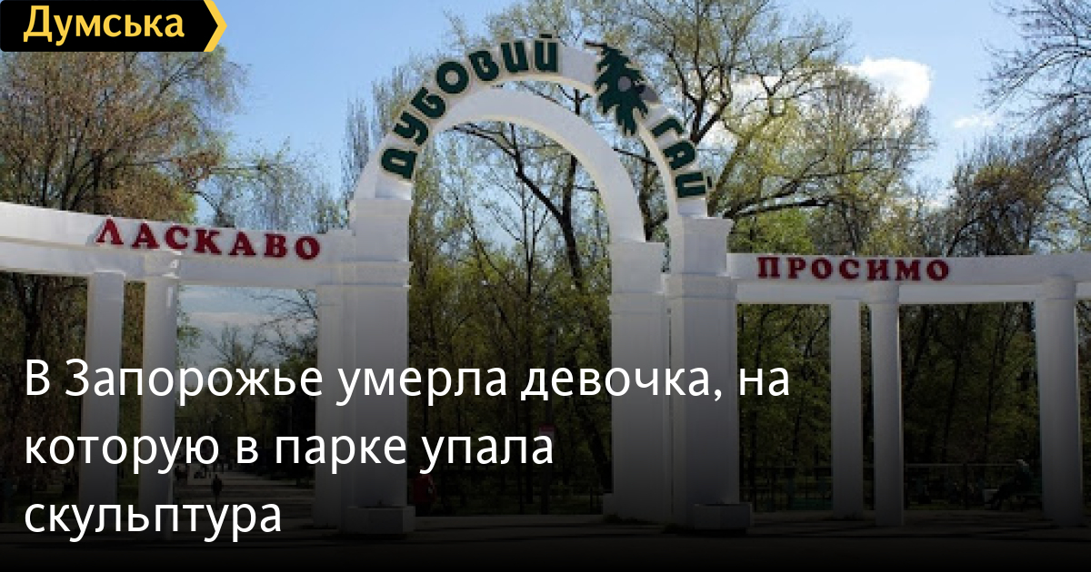 Сегодня, 9 марта, в запорожской больнице скончалась 10-летняя девочка, на которую вчера в парке «Дубовая Роща» упала 200-килограммовая скульптура. Как сообщили в пресс-службе ГУНП, по предварительной версии, девочка залезла на скульптуру, которая была не закреплена, пишет «Украинская правда». В результате деревянная конструкция рухнула прямо на ребенка. По факту случившегося открыто уголовное производство по ст. 367 и ст. 115 УК Украины. Трагедия произошла 8 марта, когда ребенок с родителями отдыхали в парке. По словам директора парка Олега Комаренко, согласно записи видеокамер, инцидент случился, пока родители девочки праздновали 8 марта в близлежащем кафе. Девочка залезла на статую, и та рухнула. Директор парка заверяет, что упавшая скульптура была демонтирована еще 5 марта из-за того, что шаталась. После этого она лежала на земле и ждала, пока ее уберут на хоздвор. «Какая-то группа из 5-6 человек эту статую поставили на место. Следствие изъяло все эти видеозаписи. То, что демонтированную статую вернули на площадку, наши сотрудники не заметили. Скульптуры не были на балансе парка. Почему девочка на нее прыгнула — я думаю, что это несчастный случай», — заявил директор парка «Дубовая роща». СМЕРТЬ РОССИЙСКИМ ОККУПАНТАМ! Заметили ошибку? Выделяйте слова с ошибкой и нажимайте control-enter |
