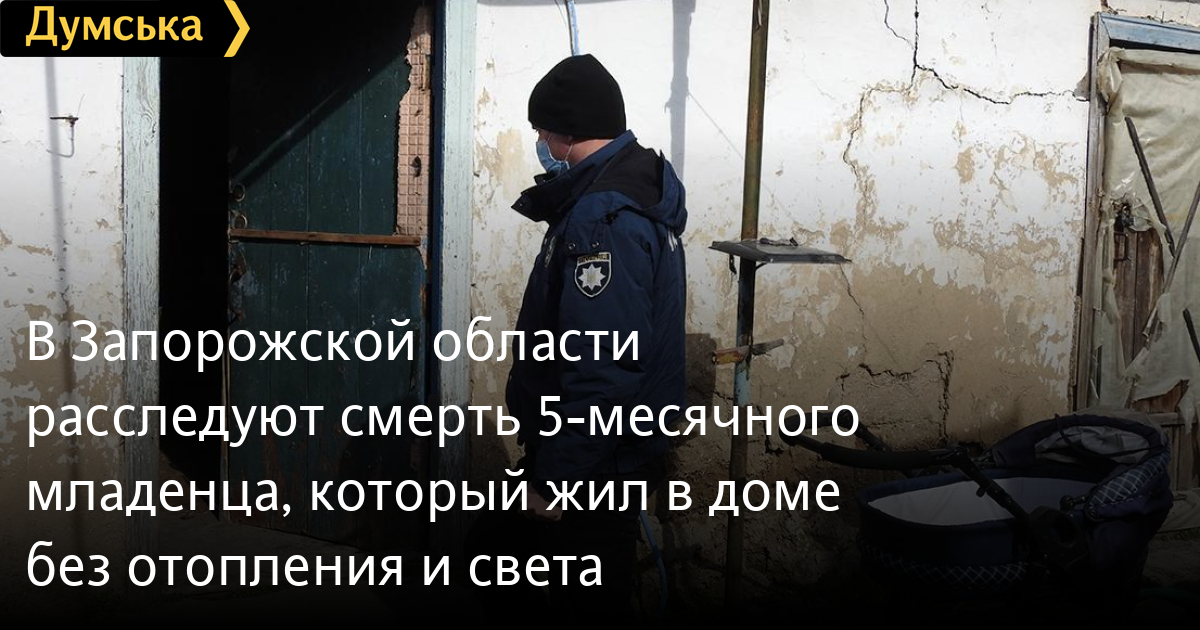 В Запорожской области расследуют смерть 5-месячного младенца, который жил в доме без отопления и светаПолиция Запорожской области расследует смерть 5-месячного мальчика из города Каменка-Днепровская. Об этом сообщили в пресс-службе полиции Запорожской области. Правоохранители отметили, что вчера около пяти утра поступило сообщение о смерти мальчика, которого доставили из одного из частных домов города. Сотрудники полиции выяснили, что погибший мальчик жил с матерью и двухлетней сестрой в хозяйственном здании, которое недавно сняла 28-летняя женщина, переехав из города Энергодар. Она нигде не работала, на учете службы по делам детей местной территориальной общины не состояла. Проживала семья при отсутствии электроснабжения и отопления, в условиях полной антисанитарии. Мать ребенка рассказала, что вернулась от соседки, с которой они пили пиво. При этом она призналась, что дети в течение двух часов находились дома абсолютно одни без какого-либо присмотра. Дальше она накормила младенца, потом уснула, а когда проснулась, обнаружила ребенка мертвым. Причину смерти мальчика установит судебно-медицинская экспертиза. Дальнейшую судьбу двухлетней девочки решит служба по делам детей Каменско-Днепровской территориальной общины. Ее доставили в местную больницу для проведения полного медицинского обследования. По данному факту открыто уголовное производство по ч. 2 ст. 115 Уголовного кодекса Украины. По результатам проведенной судебно-медицинской экспертизы будет дана окончательная правовая квалификация события. СМЕРТЬ РОССИЙСКИМ ОККУПАНТАМ! Заметили ошибку? Выделяйте слова с ошибкой и нажимайте control-enter |