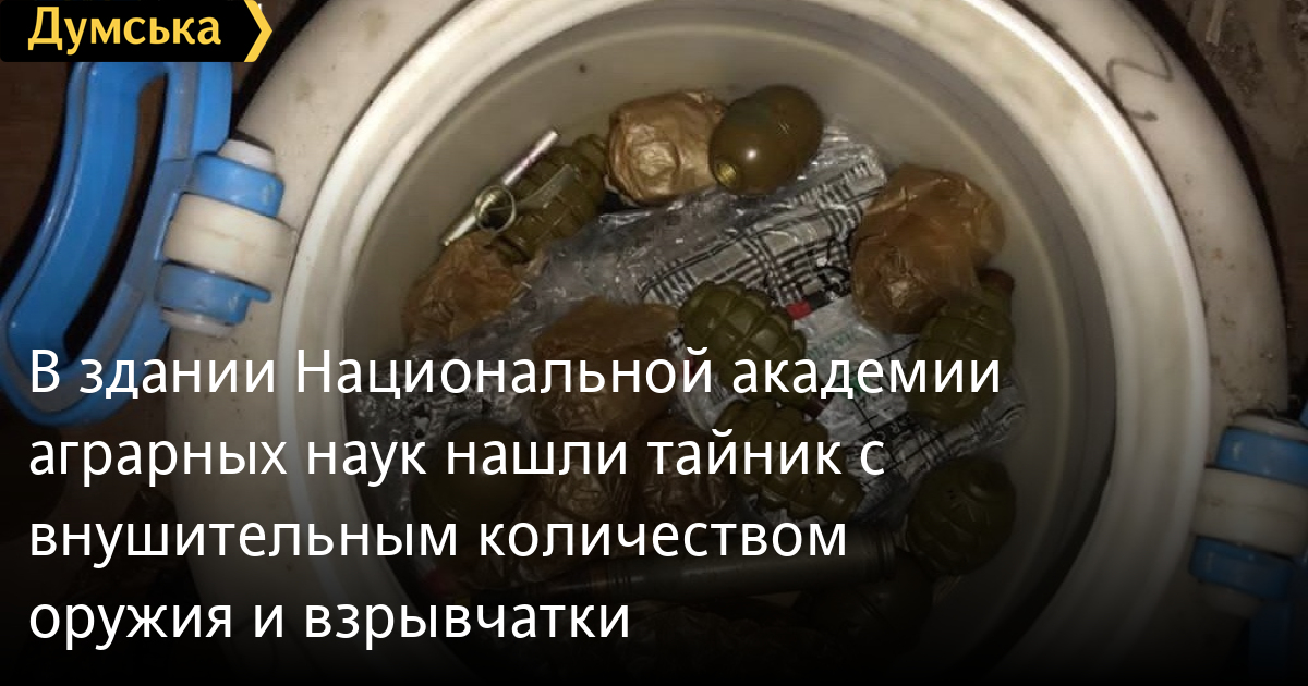В здании Национальной академии аграрных наук нашли тайник с внушительным количеством оружия и взрывчаткиТайник с внушительным количеством оружия, боеприпасов и взрывчатки обнаружила Служба безопасности Украины в здании президиума Национальной академии аграрных наук в Печерском районе Киева. Как сообщает пресс-служба ведомства, в подвальных помещениях центрального офиса Академии оперативники нашли арсенал — четыре РПГ, два автомата, почти 40 гранат РГД-5 и Ф-1, несколько пистолетов, два артиллерийских снаряда и огромное количество патронов к автоматическому оружию. Обыски проводились в рамках уголовного производства о завладении должностными лицами имущества академии. Руководство НААН подозревают в легализации имущества, добытого преступным путем и получении неправомерной выгоды. Для чего ученым понадобилось вооружаться, не сообщается. Следственные действия продолжаются. СМЕРТЬ РОССИЙСКИМ ОККУПАНТАМ! Заметили ошибку? Выделяйте слова с ошибкой и нажимайте control-enter |