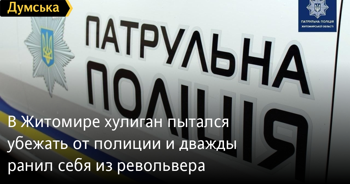 В Житомире хулиган пытался убежать от полиции и дважды ранил себя из револьвераЖитель Житомира оказался в больнице после того, как сам подстрелил себя, пытаясь убежать от правоохранителей. Об этом сообщила патрульная полиция в Житомирской области. Как стало известно, полицейские выехали на задержание хулигана, который нарушал общественный порядок, после жалобы местного жителя. Вскоре экипаж патрульных заметил похожего по приметам человека на Королева. Тот, увидев, что к нему приближаются правоохранители, начал убегать, потом зачем-то на ходу достал из кармана револьвер и дважды в себя выстрелил. Пострадавший получил ранения лица и ладони и упал на землю без сознания. В итоге хулигана пришлось срочно везти в больницу. С инцидентом разбирается следственно-оперативная группа Житомирского управления полиции. Также подробности выясняет региональная Патрульная полиция. У подозреваемого забрали на экспертизу оружие, из которого он стрелял. Предварительно эксперты установили, что это револьвер под патрон Флобера. СМЕРТЬ РОССИЙСКИМ ОККУПАНТАМ! Заметили ошибку? Выделяйте слова с ошибкой и нажимайте control-enter Новости по этой теме: 12 января 2022: Харьковские станции метро ожидает масштабная проверка: в вестибюле подземки на площади Конституции рухнул потолок (фото) 8 января 2022: В Одессе из офиса фирмы выкрали сейф с внушительной суммой денег, золотом и пистолетом 27 декабря 2021: В лесополосе под Киевом нашли тело главврача из Ровенской области: по подозрению в убийстве задержаны таксист с приятелем 23 декабря 2021: В Киеве задержали подозреваемых мошенников, которые обманывали на свиданиях мужчин ради денег |