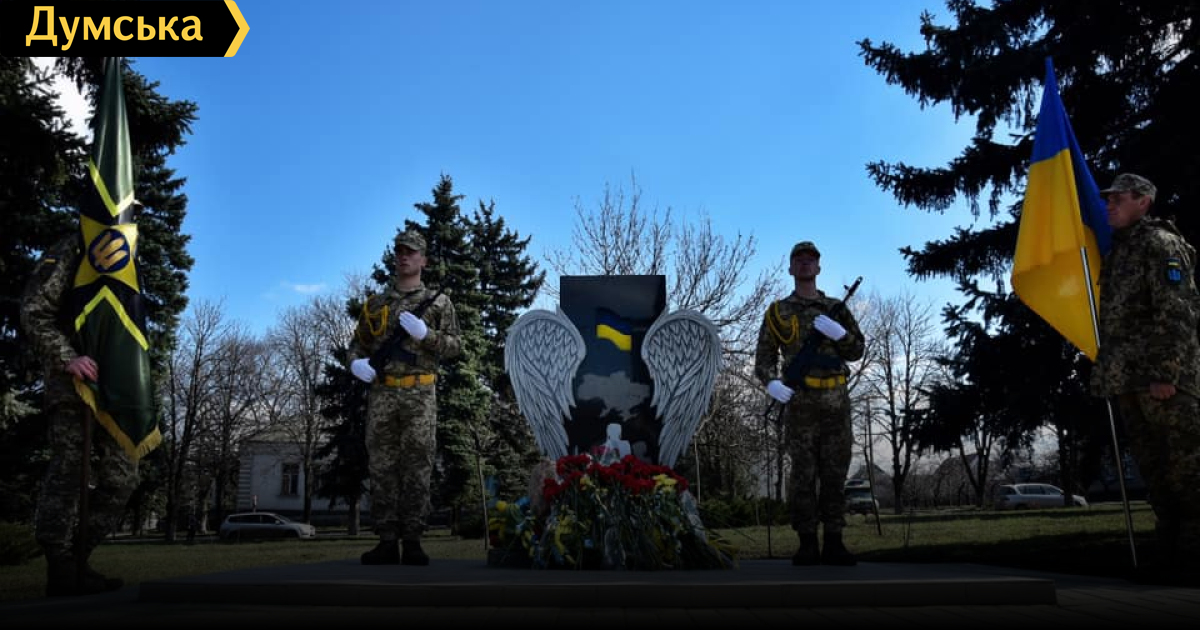 В прифронтовой Марьинке Донецкой области, которую защищает 28-я отдельная мехбригада имени Рыцарей Зимнего похода, открыли памятник воинам, погибшим при обороне города.