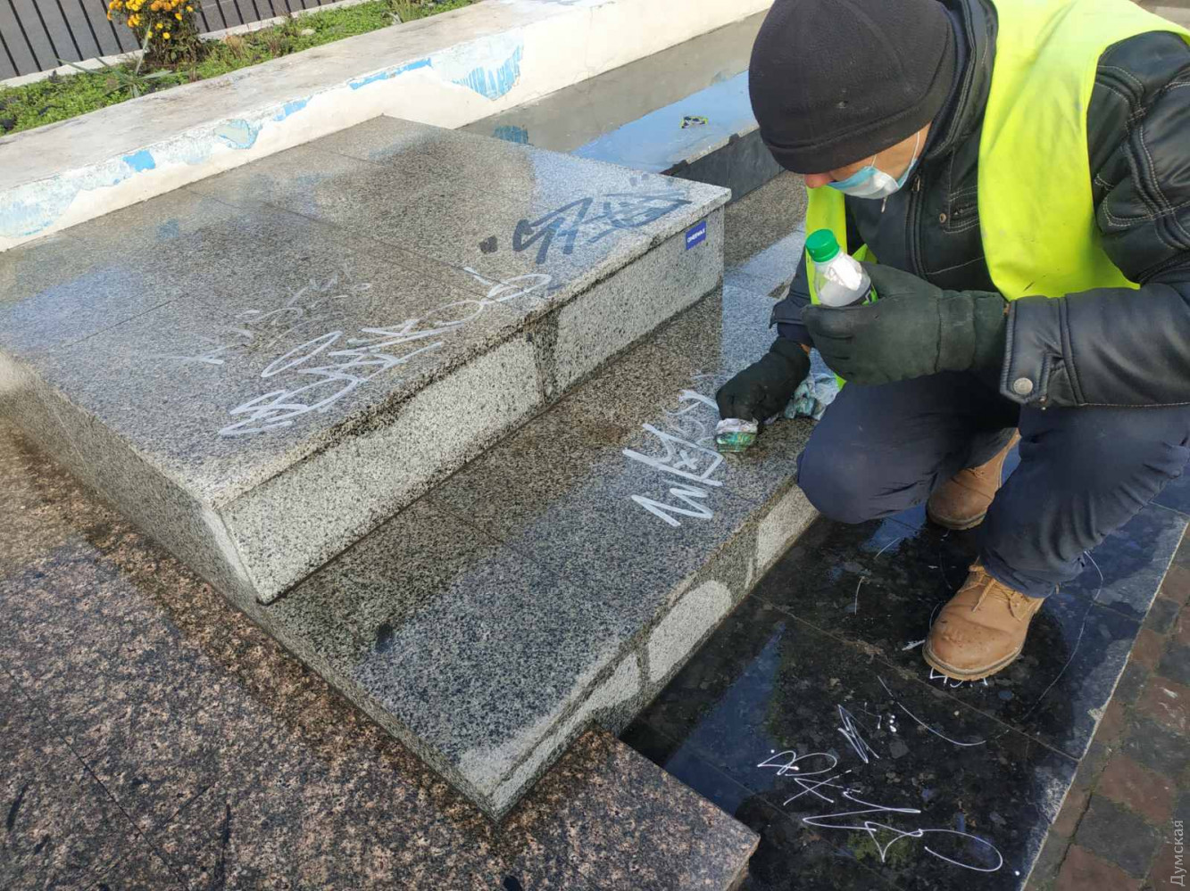 Сотрудники КП «Сервисный центр» очистили постамент памятника «Похищение Европы» на 9-й станции Большого Фонтана от надписей маркерами, которые оставили вандалы. В КП сообщили, что вчера «привели памятник в надлежащий вид».