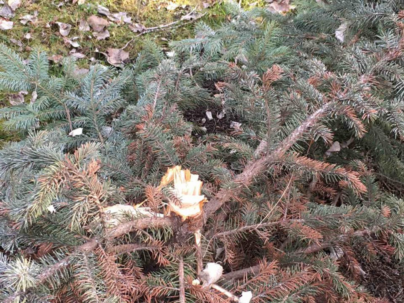 Вандалы срезали голубую ель в парке Шевченко (обновлено)