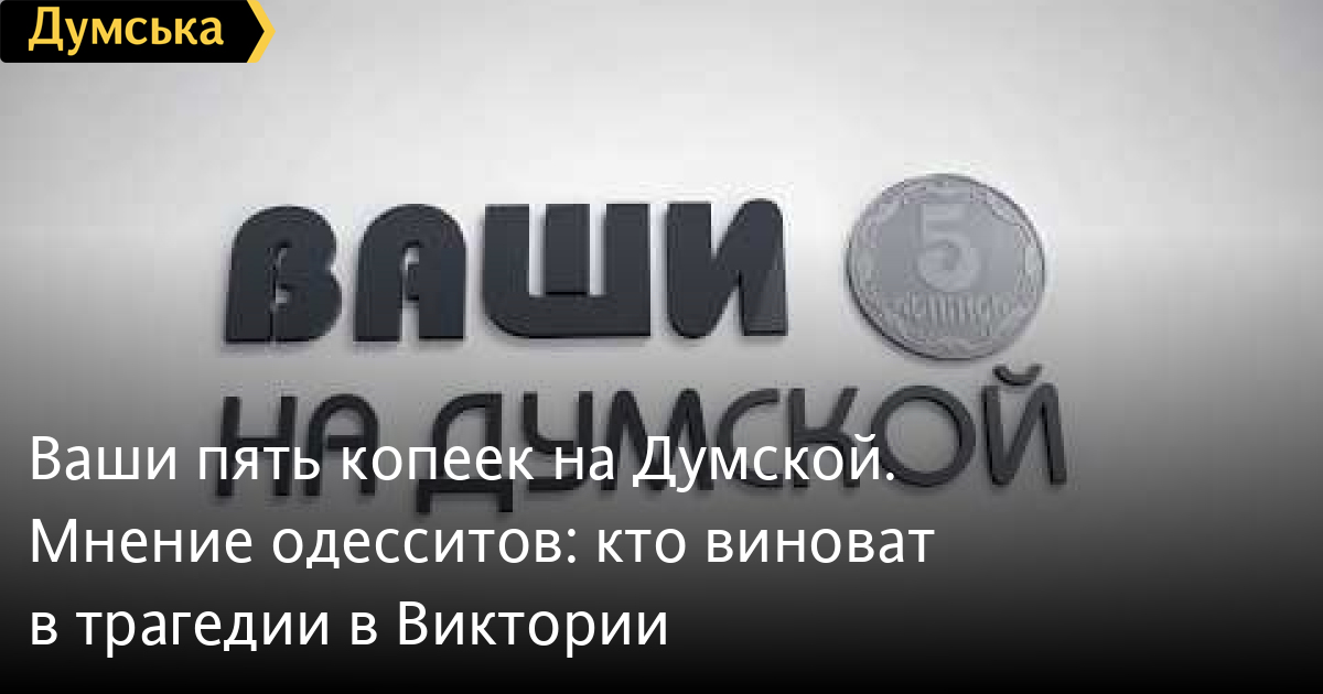 Ваши пять копеек на «Думской». Мнение одесситов: кто виноват в трагедии в «Виктории»СМЕРТЬ РОССИЙСКИМ ОККУПАНТАМ! Заметили ошибку? Выделяйте слова с ошибкой и нажимайте control-enter Думская ТВ. Ваши пять копеек на «Думской»: