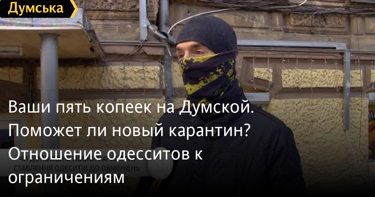 Ваши пять копеек на «Думской». Поможет ли новый карантин? Отношение одесситов к ограничениямСМЕРТЬ РОССИЙСКИМ ОККУПАНТАМ! Заметили ошибку? Выделяйте слова с ошибкой и нажимайте control-enter Думская ТВ. Ваши пять копеек на «Думской»: