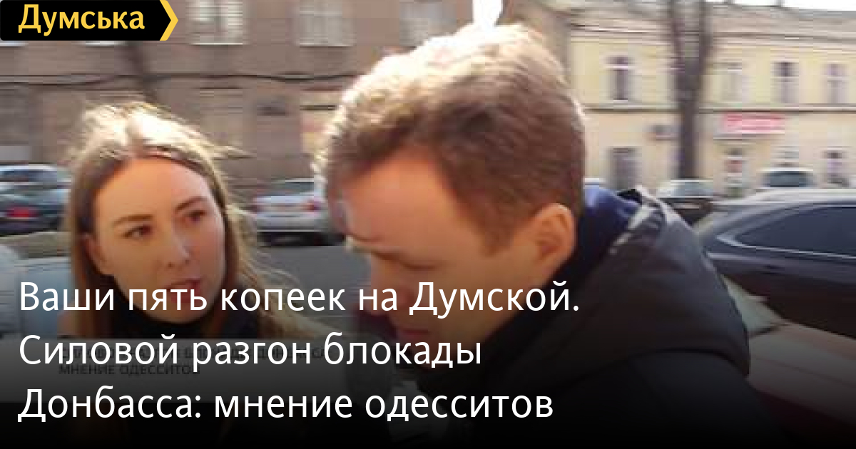 Ваши пять копеек на «Думской». Силовой разгон блокады Донбасса: мнение одесситовСМЕРТЬ РОССИЙСКИМ ОККУПАНТАМ! Заметили ошибку? Выделяйте слова с ошибкой и нажимайте control-enter Думская ТВ. Ваши пять копеек на «Думской»: