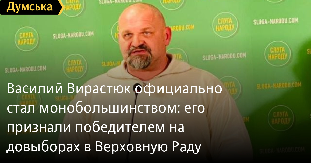 Василий Вирастюк официально стал монобольшинством: его признали победителем на довыборах в Верховную РадуВ скандально известном округе №87 на Прикарпатье после очередного пересчета голосов еще раз объявили победителем на довыборах в Раду силача Василия Вирастюка. Об этом сообщила общественная организация «Опора», также официальную информацию обнародовала пресс-служба партии «Слуга народа», от которой баллотировался Вирастюк. Уточняется, что были еще раз пересчитаны все голоса, пересмотрены результаты на семи участках, и состоялись судебные заседания, которые оспаривали результаты на двух участках. После этого в избирательную комиссию Ивано-Франковской области передали уточненный протокол с итогами. По последним данным, Вирастюк набрал 15 536 голосов избирателей. Ближайшего конкурента Александра Шевченко от политсилы «За майбутнє» поддержало 15 114 человек, то есть меньше на 422. Интересно, что на этом округе баллотировалось сразу три Александра Шевченко: один из них набрал 387 голосов, еще один – 146. (Это известная и незапрещенная выборная технология по оттягиванию голосов у политических конкурентов). Отметим, что довыборы на Прикарпатье состоялись еще 28 марта. Оглашения результатов ждали до 12 апреля. Голоса там считали больше недели, то и дело всплывали спорные моменты. Были возбуждены уголовные дела, в частности, из-за того, что якобы кто-то украл часть бюллетеней. В целом полиция насчитала 113 сообщений о возможных нарушениях в округе и заявила о 17 открытых производствах. На некоторых участках голосование признали недействительным и потребовали пересчета, но в итоге суд назвал решение о пересмотре результатов беспочвенным. В конце концов ОИК взяла за основу протокол с первоначальными данными и внесла их в уточненный документ. Отметим, что Вирастюка поздравляют уже второй раз. В прошлый раз ЦИК уведомила о его победе 4 апреля. Тогда его конкурент Александр Шевченко заявил, что намерен оспаривать результаты довыборов в суде. СМЕРТЬ РОССИЙСКИМ ОККУПАНТАМ! Заметили ошибку? Выделяйте слова с ошибкой и нажимайте control-enter |