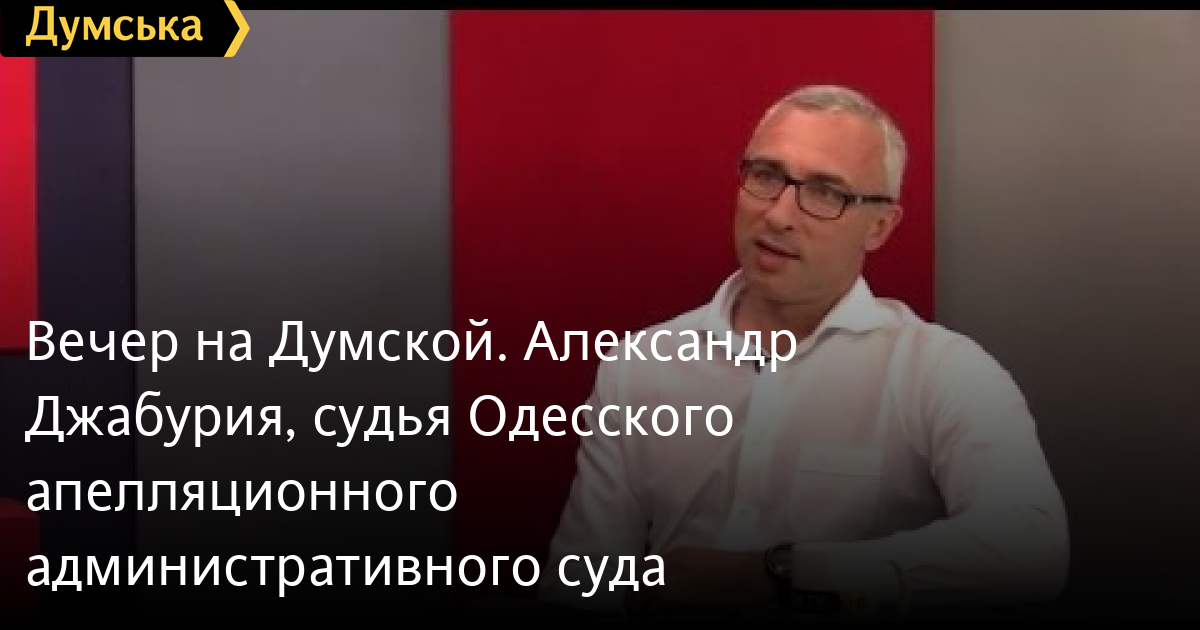 Вечер на Думской. Александр Джабурия, судья Одесского апелляционного административного судаСМЕРТЬ РОССИЙСКИМ ОККУПАНТАМ! Заметили ошибку? Выделяйте слова с ошибкой и нажимайте control-enter Думская ТВ. Вечер на Думской: