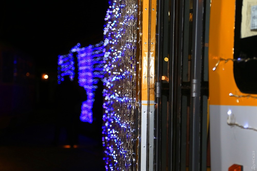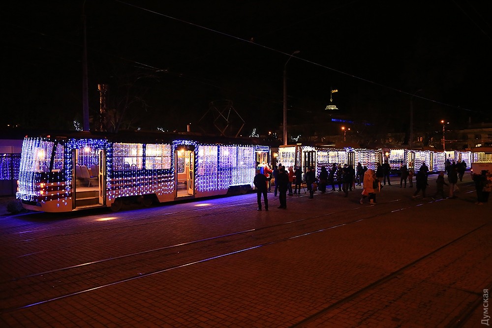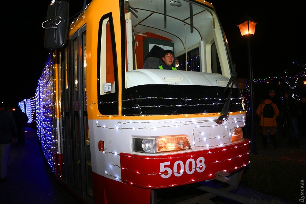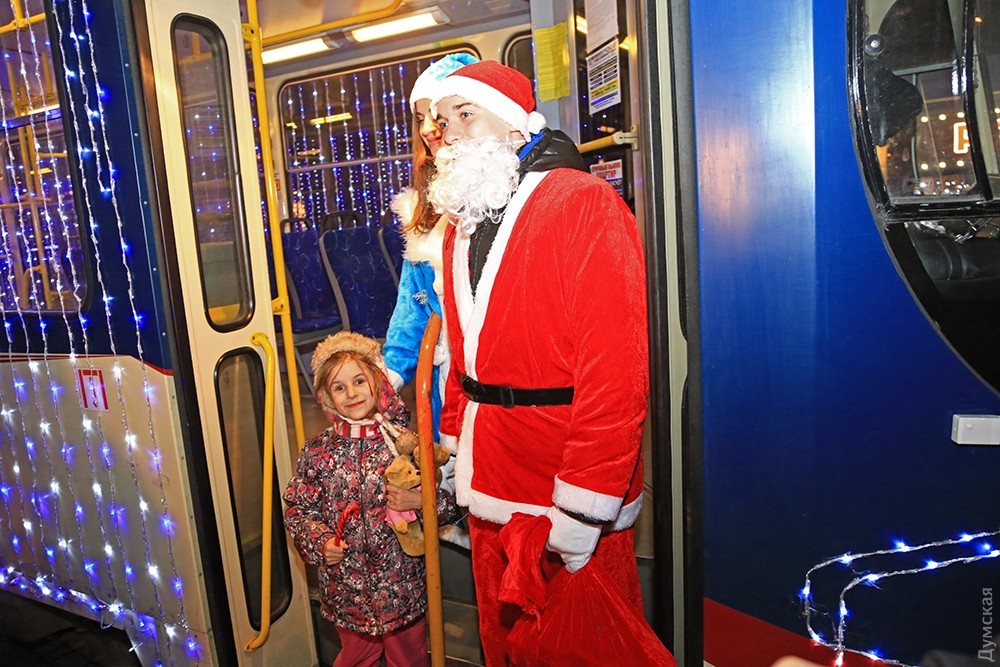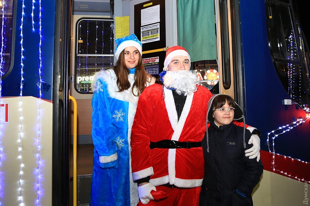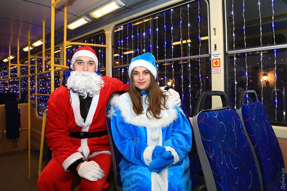 Сегодня вечером несколько одесских трамваев преобразились. Их украсили гирляндами и отправили во все концы города, чтобы поздравить одесситов с наступающим Новым годом. Праздничные трамваи ходили в Аркадию, на поселок Котовского, Черемушки и по Люстдорфской дороге. В салоне пассажиров встречали Дед Мороз и Снегурочка, которые поздравляли малышей подарками из большого красного мешка.