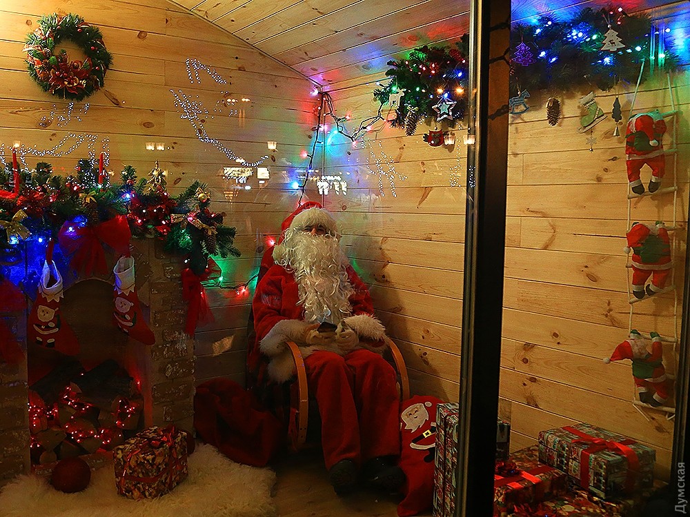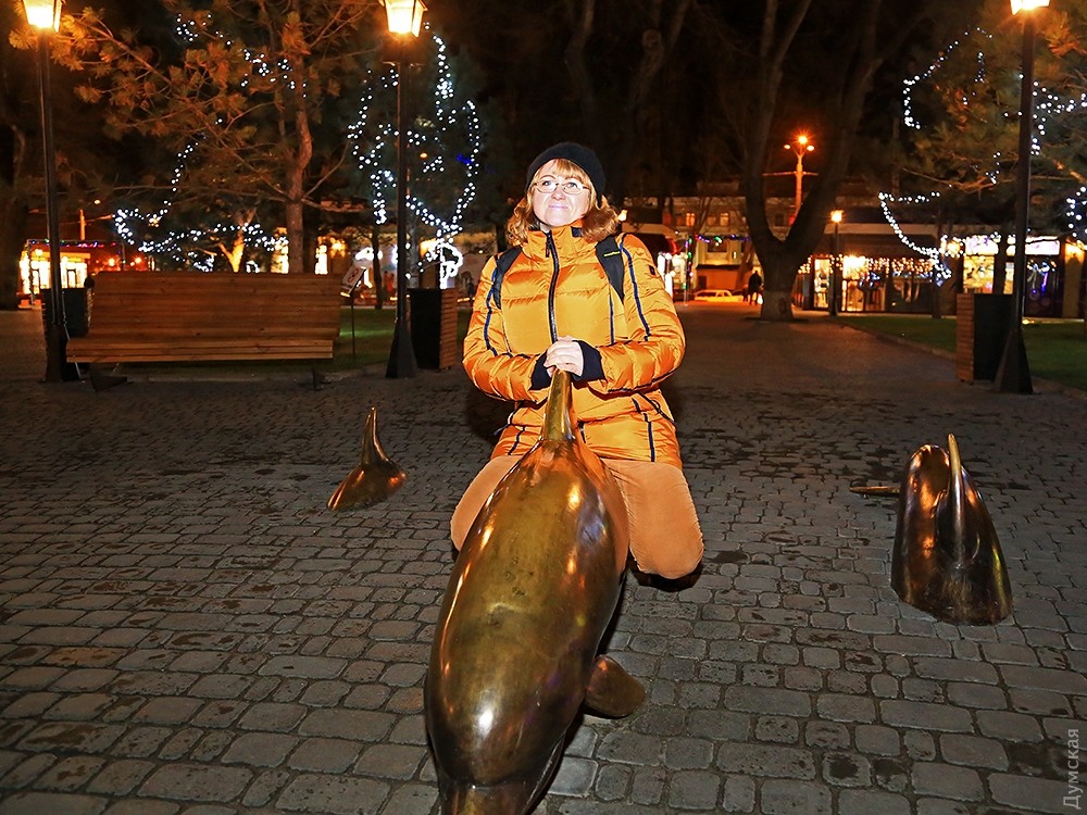Около 19 часов вся четверка собралась на Старосенной площади, где играл оркестр Санта-Клаусов, сияла украшенная елка, а в небольшом домике восседал святой Николай. Отдыхающие фотографировались на фигурах дельфинов, слушали музыку и любовались праздничной иллюминацией. В последнем новогоднем трамвае прибыл мэр Геннадий Труханов, который поздравлял собравшихся и дарил подарки вместе с Дедом Морозом. Напомним, 8 января на улицы Одессы снова выйдут праздничные трамваи — с Рождеством детей поздравят колядники. На Старосенной площади пассажиров будет ждать хор Одесской епархии и Рождественский вертеп. Расписание — здесь. Фото — Сергей Смоленцев