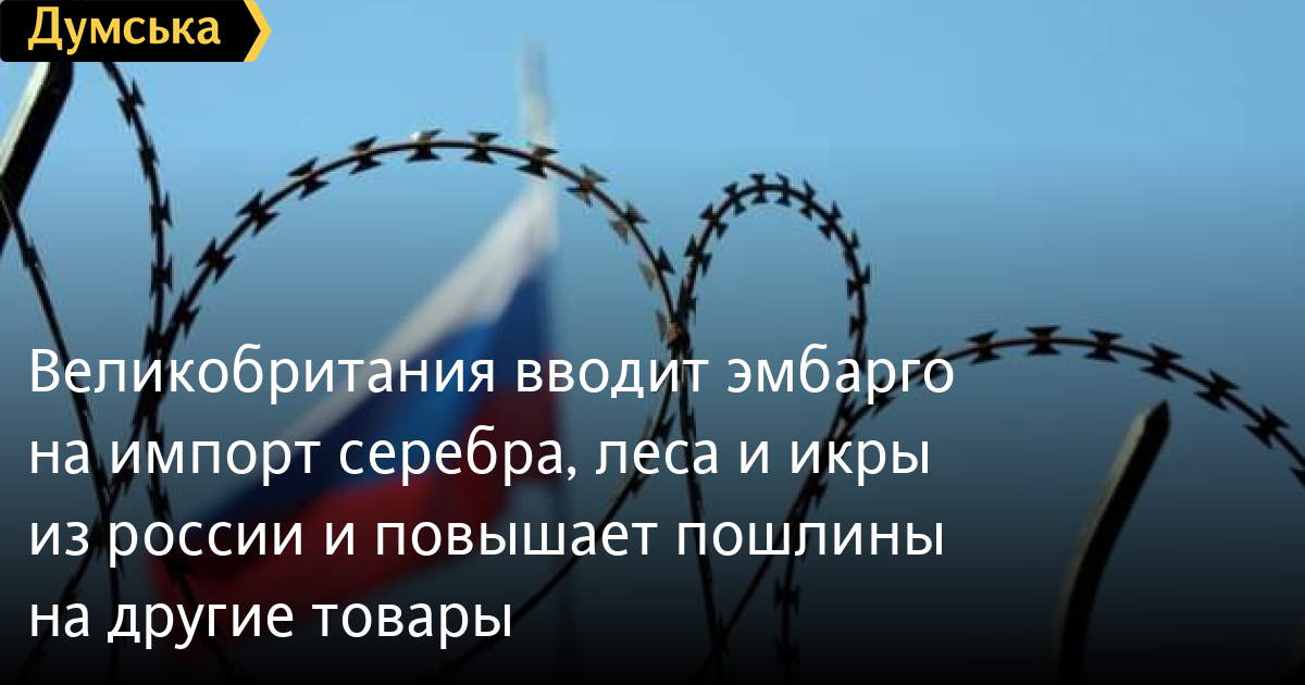 Великобритания вводит эмбарго на импорт серебра, леса и икры из россии и повышает пошлины на другие товарыВеликобритания вводит новые санкции в отношении россии – они включают запрет на импорт российского серебра, лесоматериалов и высококачественных продуктов. Об этом сообщают в Центре стратегических коммуникаций и информационной безопасности. Под высококачественными продуктами, в частности, подразумевается икра из россии. Кроме того, в рамках санкций вырастут пошлины на 96 категорий товаров из россии и беларуси. Среди них – алмазы и каучук, живые животные, продукты питания, одежда, транспортные средства, музыкальные инструменты и т.д. С новыми санкциями общая сумма импортных пошлин и запретов на российские товары составит более 1 миллиарда фунтов. СМЕРТЬ РОСІЙСЬКИМ ОКУПАНТАМ! Помітили помилку? Виділяйте слова з помилкою та натискайте control-enter |