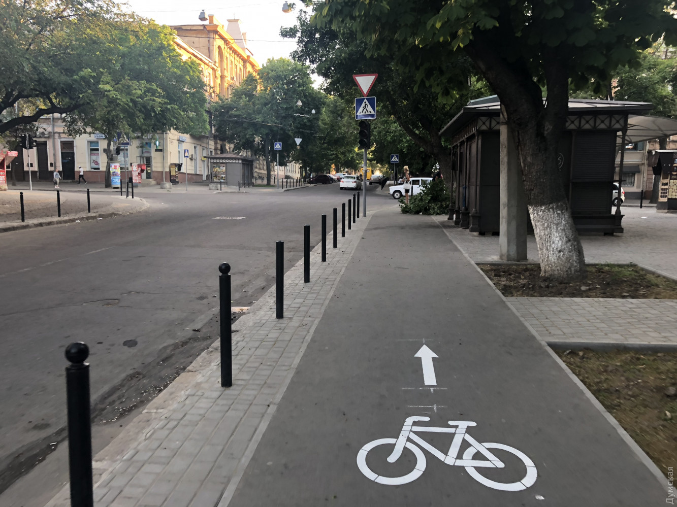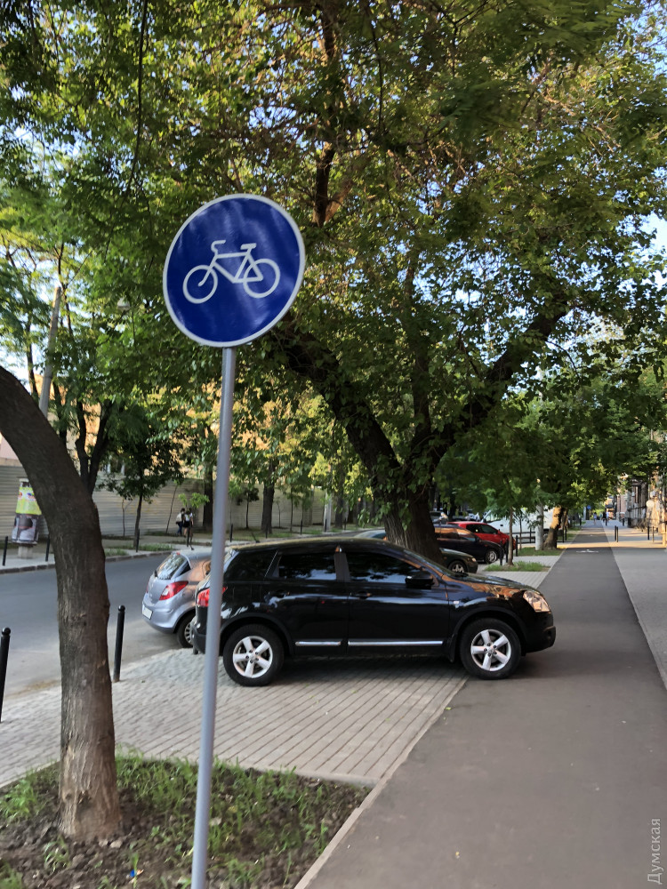 Вообще — это часть будущего комплекса велодорожек. Только непонятно, что станет с первой пока достроят последнюю. В том режиме, что имеем сейчас — ею пользоваться невозможно. Я еду по проезжей. У медина студенты толпой на ней стоят, и столы заведения. Между Княжеской и Коблевской там стоят "Креветки"
