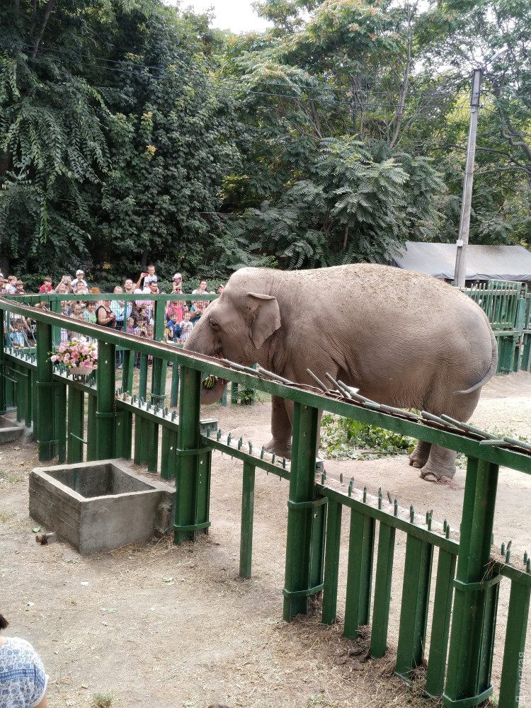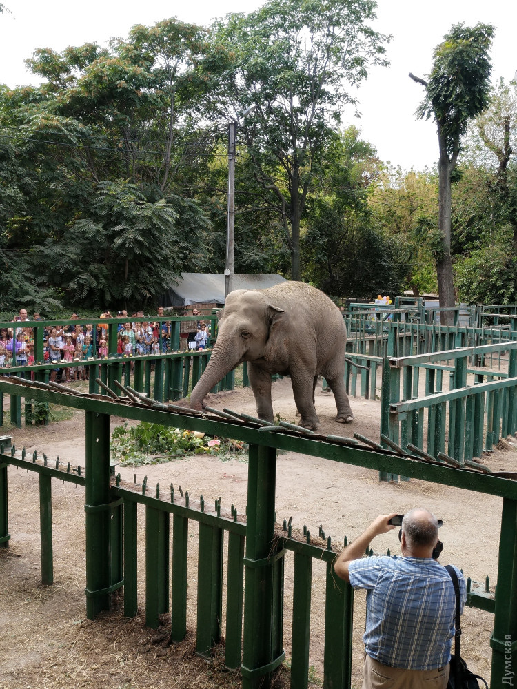 Директор зоопарка встретил нас на входе и, указывая на живую очередь за билетами, отметил: «Вода в Одессе явно похолодала». В шутку или всерьез Игорь Беляков говорит, что за годы работы в зверинце научился определять, какая температура воздуха и воды на пляже по потоку посетителей. В этом году, рассказывает директор, погода в Одессе сыграла зверинцу на руку, мол, если так пойдет и дальше, то к концу года в копилку зоопарка попадет до 10 миллионов гривен. На эти деньги хорошо бы построить новый львятник, а освободившееся место отдать под расширение слоновника.
