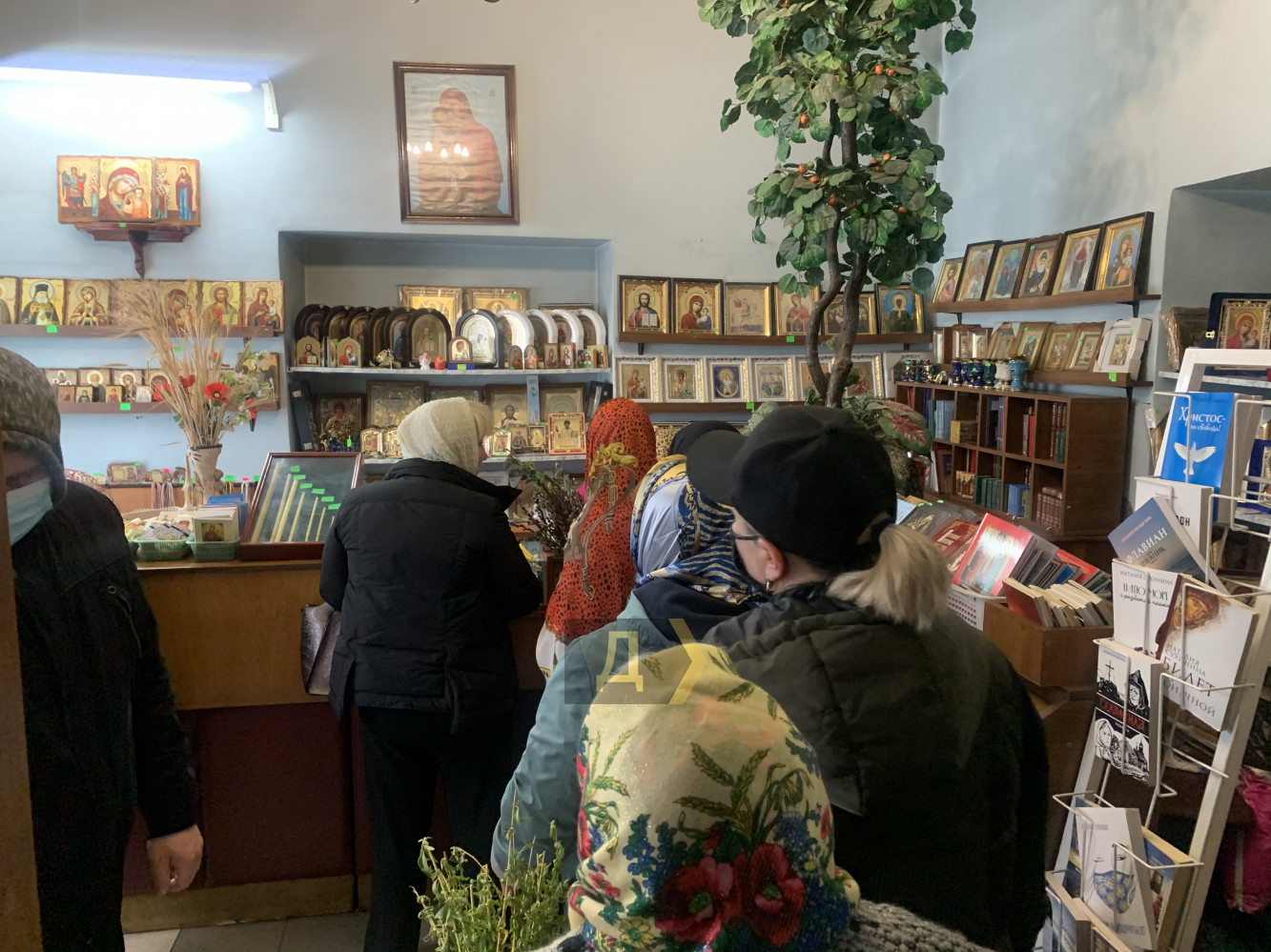 Несмотря на многочисленные предупреждения о необходимости соблюдать карантинные нормы, прихожане умудрились устроить настоящую толкучку в церковной лавке храма. По всей видимости, они тоже верят, что «коронавирус не прилипнет».