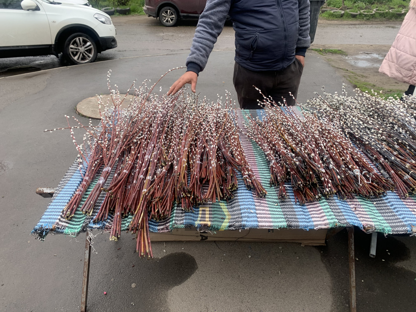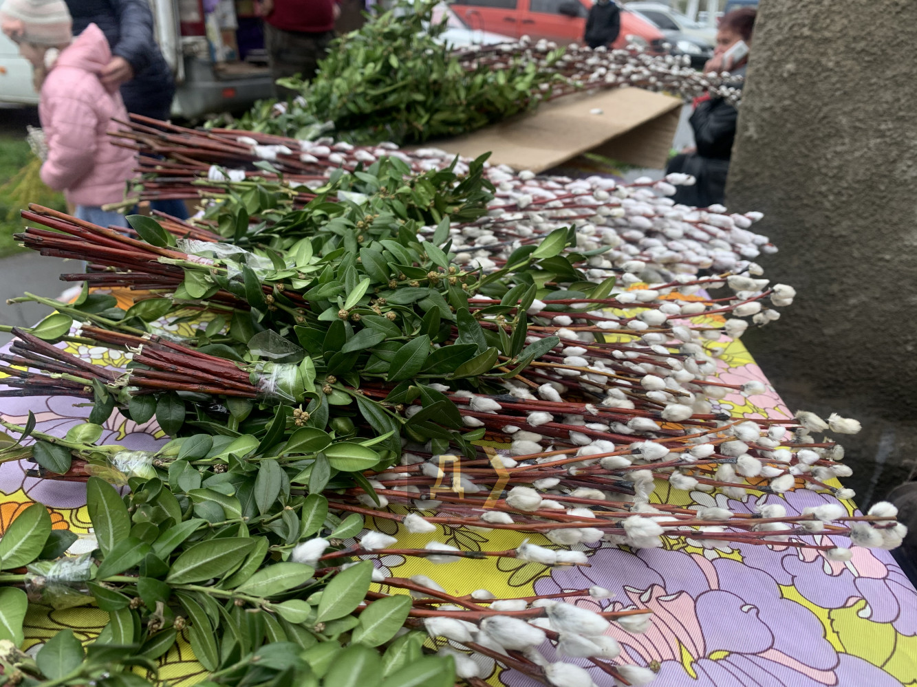На улице торговцы организовали настоящий вербный базар. Букеты для дальнейшего освящения можно было купить по цене от 5 до 30 гривен.