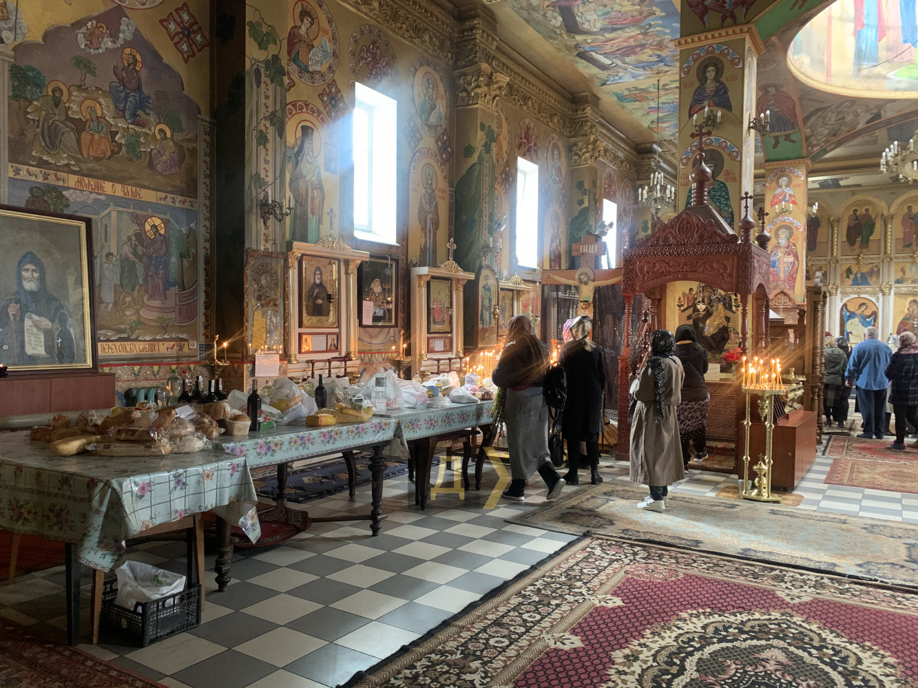 На Преображенской улице возле Успенского собора также возник стихийный рынок, все как всегда. Внутри соборов людей немного, прихожане ставят свечи и уходят праздновать домой.