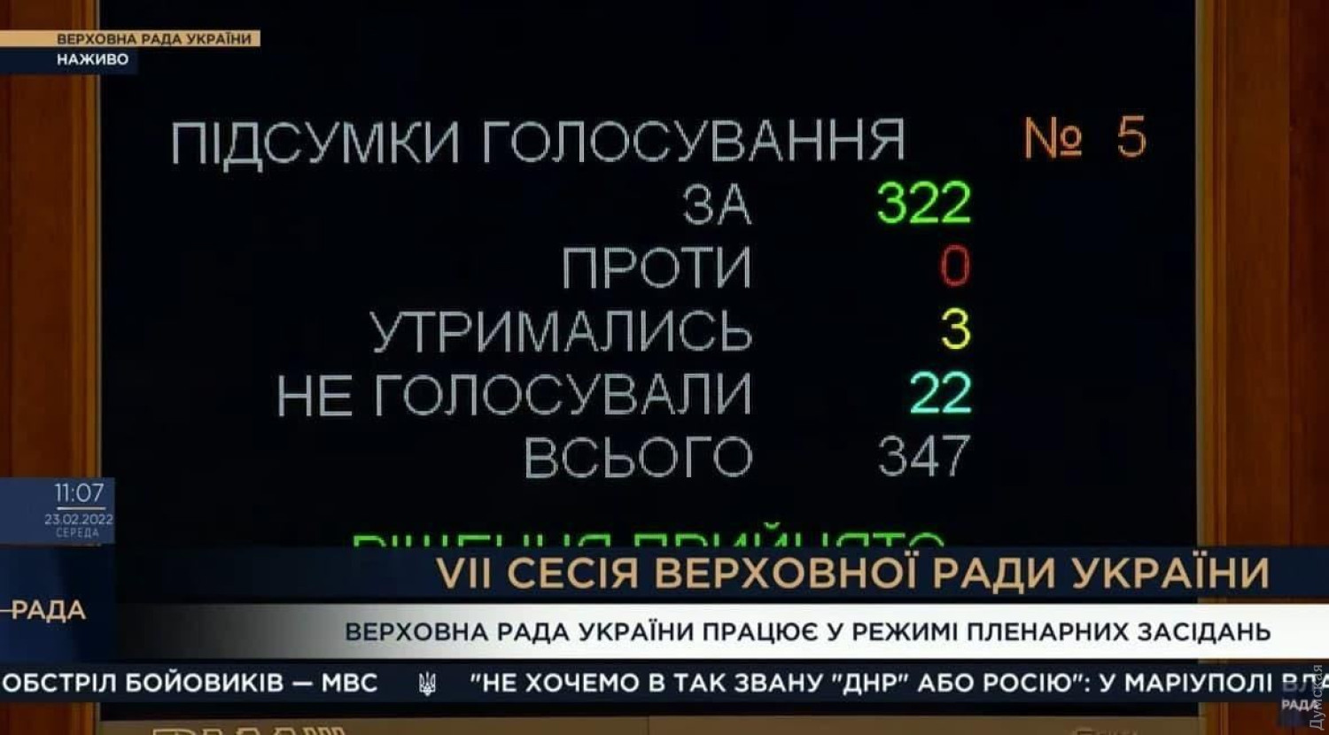 Верховная Рада приняла санкции против депутатов госдумы РФ, которые голосовали за признание «независимости» псевдореспублик «ЛДНР»Народные депутаты Украины большинством голосов приняли постановление о введении санкций в отношении 351 гражданина РФ – депутатов госдумы, которые 15 февраля поддержали обращение к Путину с просьбой о признании «независимости» марионеточных псевдореспублик «ЛНР» и «ДНР». «За» постановление проголосовали 322 нардепа, против не было ни одного голоса, но трое депутатов воздержались, а 22 – не голосовали. Постановление предусматривает блокировку активов российских депутатов в Украине, введение для них ограничений на проведение торговых операций в стране, частичную или полную остановку транзита ресурсов, полетов, перевозок по территории Украины, предотвращение выводу их капитала из Украины, остановку выполнения экономических и финансовых обязательств, аннулирование их лицензий и других разрешений, действующих в Украине, запрет на участие в приватизации, аренде госимущества, запрет на использование радиочастот, ограничение на использование электронных коммуникаций, запрет на операции с ценными бумагами, остановку действий торговых соглашений, остановку выдачи украинских виз, лишение государственных наград Украины, запрет на приобретение земельных участков и другие меры. СМЕРТЬ РОСІЙСЬКИМ ОКУПАНТАМ! Помітили помилку? Виділяйте слова з помилкою та натискайте control-enter |