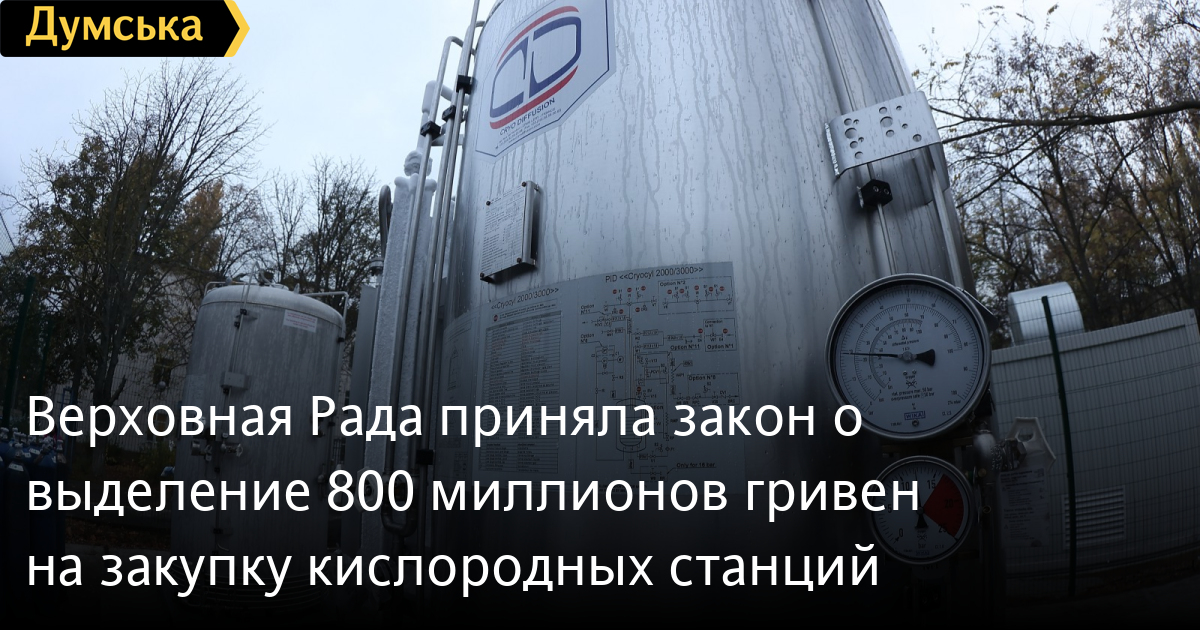 Верховная Рада приняла закон о выделение 800 миллионов гривен на закупку кислородных станцийЗакон Украины, который предусматривает внесение изменений в госбюджет на 2021 год и увеличивает расходы на закупки, проектирование и установку кислородных станций, приняла Верховная Рада Украины. Соответствующий законопроект № 5460 поддержали 336 народных депутатов в ходе пленарного заседания 4 ноября. Законом внесены изменения бюджет-2021, которыми предусмотрено создание новых бюджетных программ: «Централизованные закупки кислородных станций для опорных учреждений здравоохранения» и «Субвенция из государственного бюджета местным бюджетам на закупку опорными учреждениями здравоохранения услуг по проектированию и установке кислородных станций» 650 млн гривен направят на закупку оборудования и 150 млн гривен — на проектирование станций и монтаж. Средства перераспределяют за счет НДС с ввезенных на таможенную территорию Украины товаров. СМЕРТЬ РОССИЙСКИМ ОККУПАНТАМ! Заметили ошибку? Выделяйте слова с ошибкой и нажимайте control-enter |