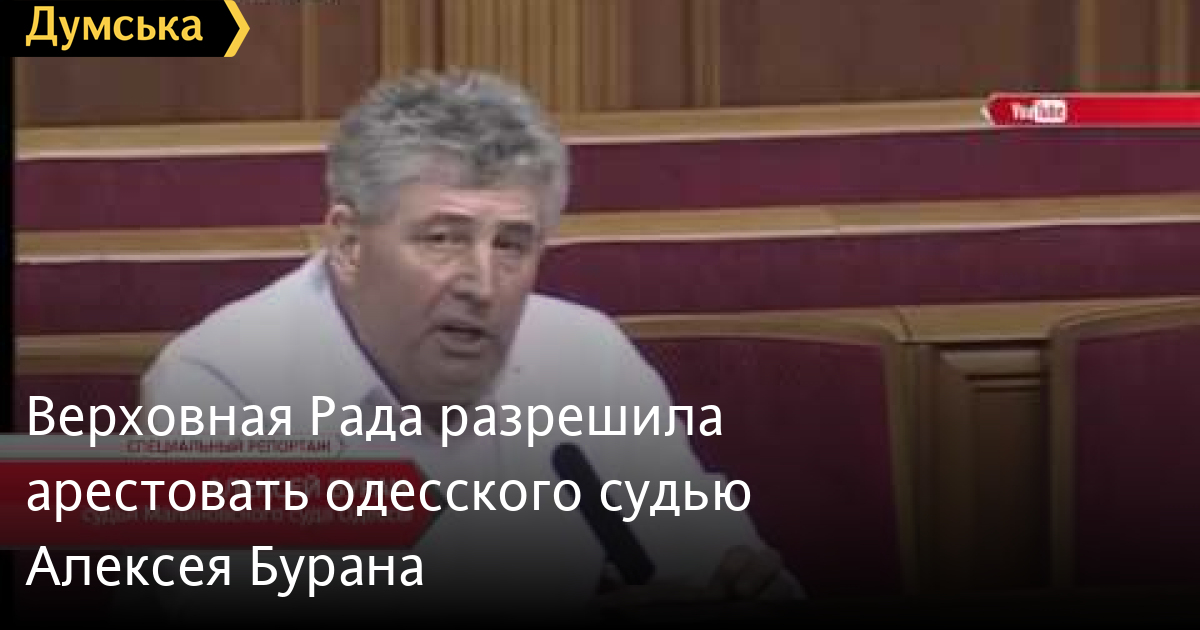 Верховная Рада разрешила арестовать одесского судью Алексея Бурана. Принять однозначное решение призвал коллег народный депутат Украины Алексей Гончаренко. Во время обсуждения постановления слово предоставили и самому виновнику собрания. В итоге «за» снятие неприкосновенности проголосовали 255 депутатов СМЕРТЬ РОССИЙСКИМ ОККУПАНТАМ! Заметили ошибку? Выделяйте слова с ошибкой и нажимайте control-enter Думская ТВ. Сюжеты: