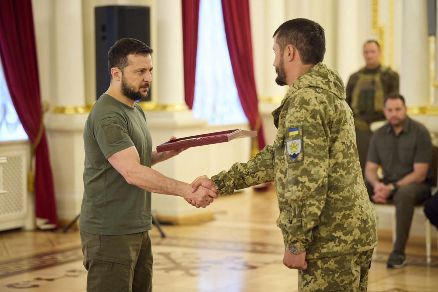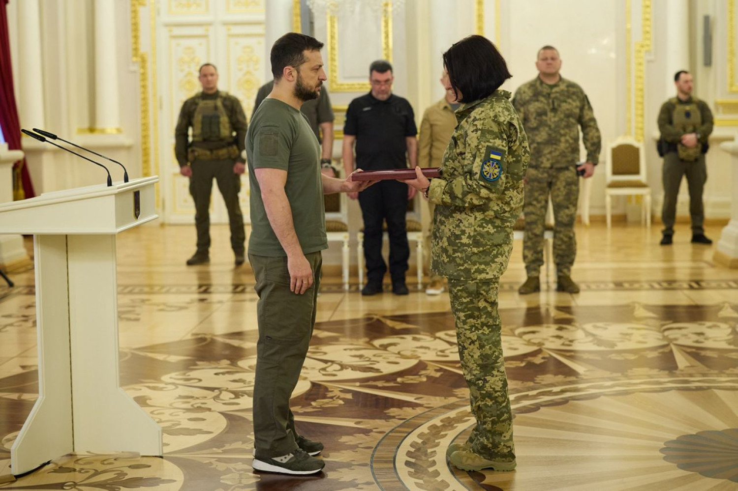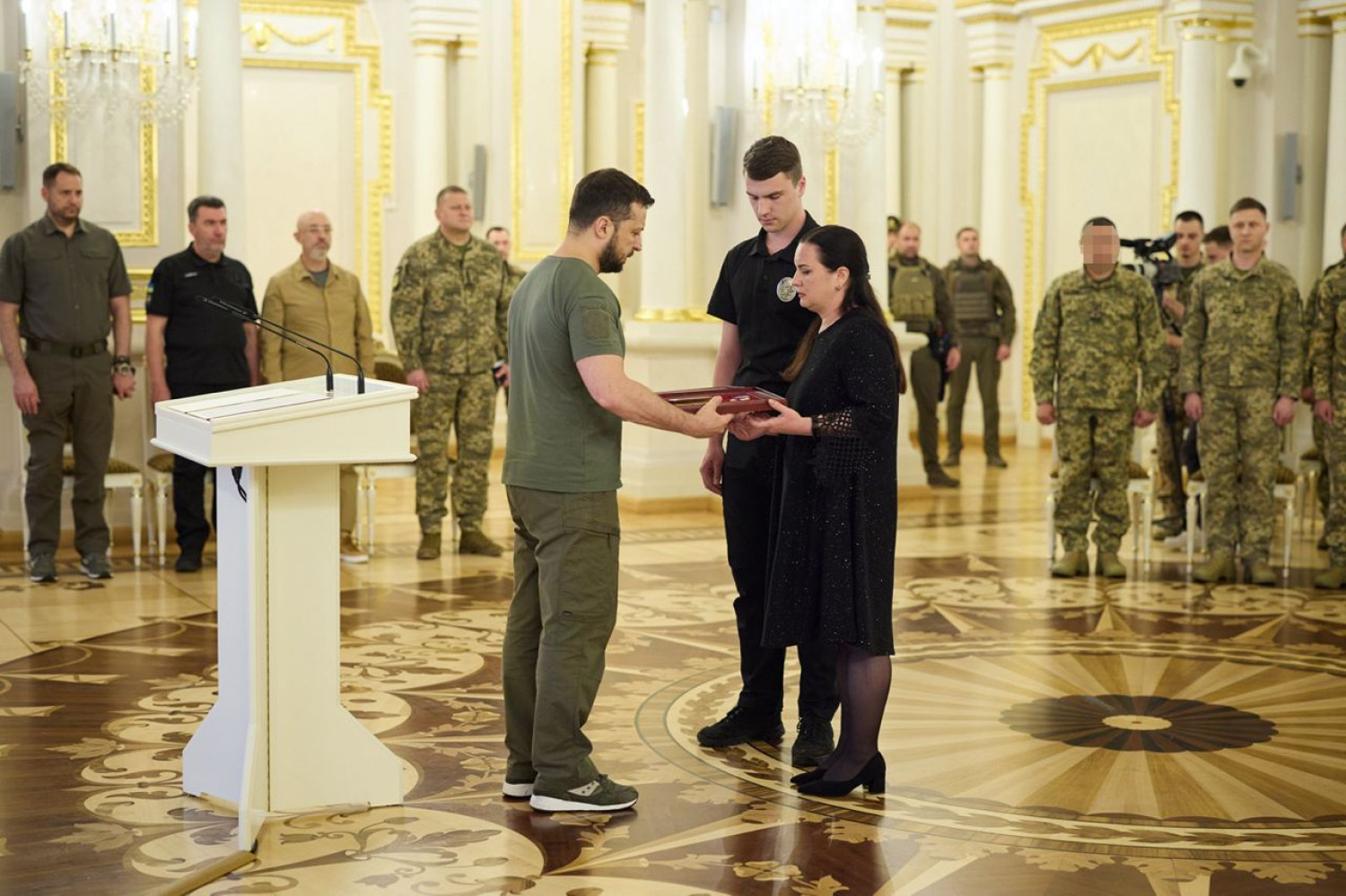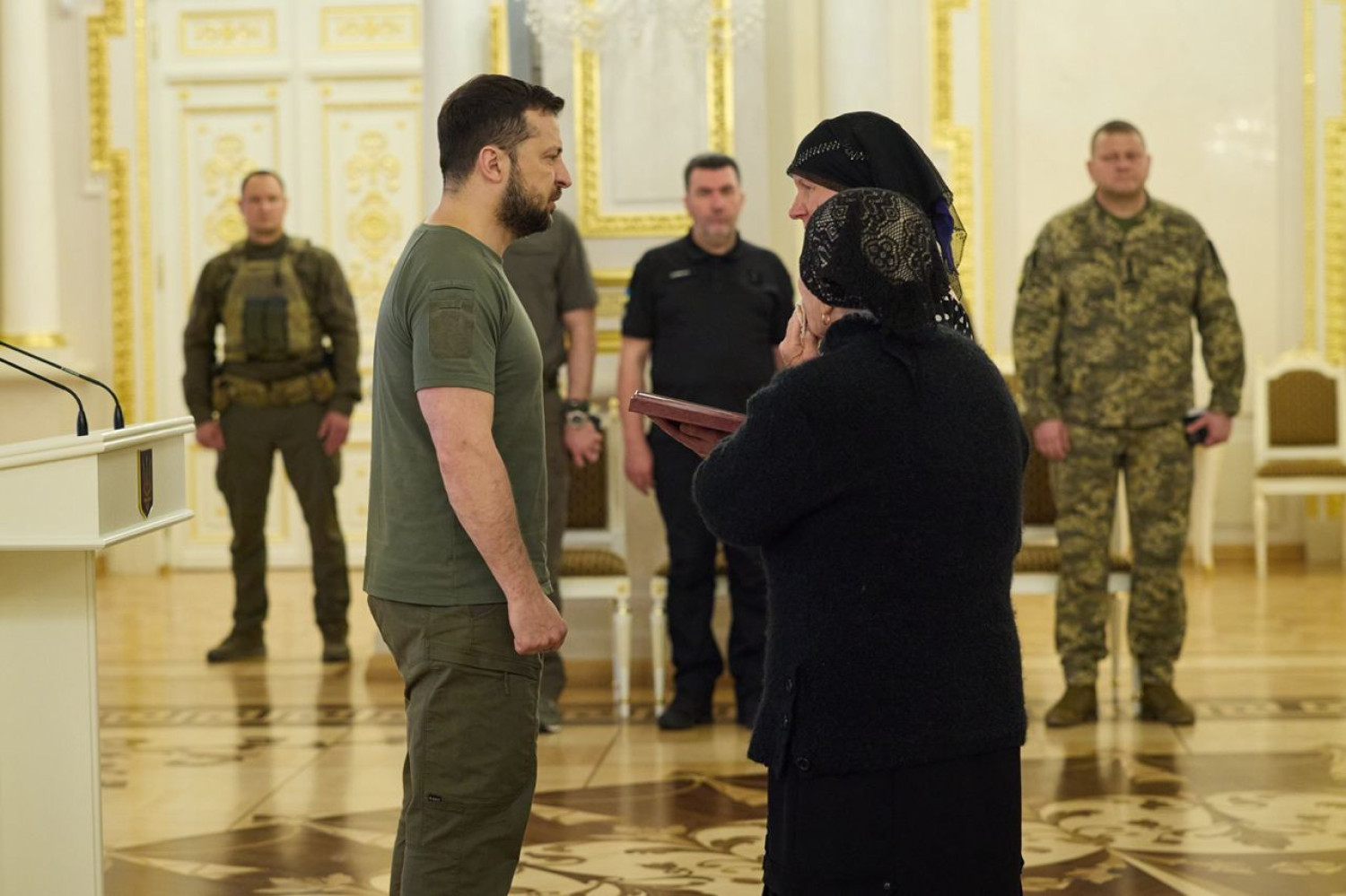 Верховний головнокомандувач вручив 14 орденів «Золота Зірка» Героям України та членам їхніх родинОрдени «Золота Зірка» вручив Президент України, Верховний головнокомандувач Збройних сил України Володимир Зеленський військовослужбовцям, яким присвоєно звання Героя України, та членам родин загиблих захисників, удостоєних цього звання посмертно. Як повідомила прес-служба голови держави, всього було нагороджено 14 захисників. «За цими нагородами – не просто подвиги, а врятовані міста, цивільні люди, побратими. Особистості, які змогли стати найкращими, і родини, які виховали та підтримали наших захисників. А також – неминуча поразка ворога», – зазначив під час нагородження Президент України. Присутні вшанували пам’ять загиблих хвилиною мовчання. СМЕРТЬ РОСІЙСЬКИМ ОКУПАНТАМ! Помітили помилку? Виділяйте слова з помилкою та натискайте control-enter |