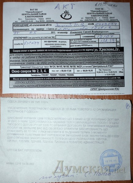 Уважаемая Думская, я правильно понимаю, что на квитанции долг написал в 138 гривен и из-за этого отключили свет?