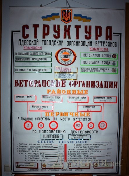 Если посмотреть правде в глаза то в союзе ветеранов выглядит все так: офис у них где то 300 кв.м., и заметьте в центре города, и они за него платят 1 грн в год(! ), работать они начинают в 10.00 но заканчивают максимум в 16.00, при этом прием ветеранов (да и всех остальных) у них до 13.00, а с 13.00 до 14.00 у них обед. Лично у меня есть уверенность что там еще и идет борьба за контроль над советом ветеранов между Соколовым, Добровольским и еще одним чудаком, а почему? А потому что все средства которые им выделялись красиво списывали на всякие акции и клали себе в карман.