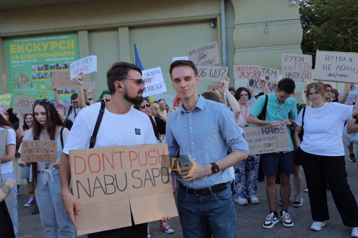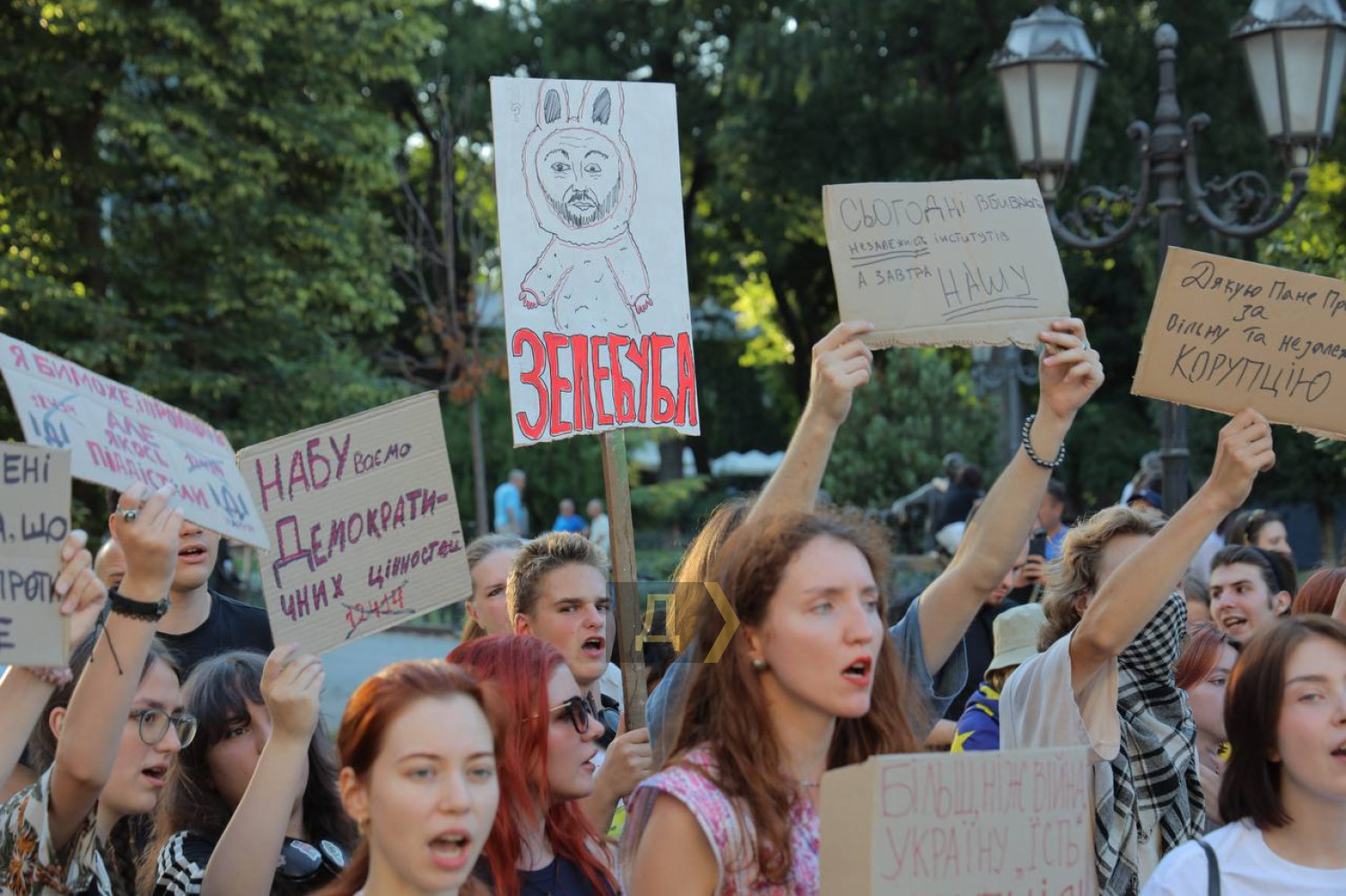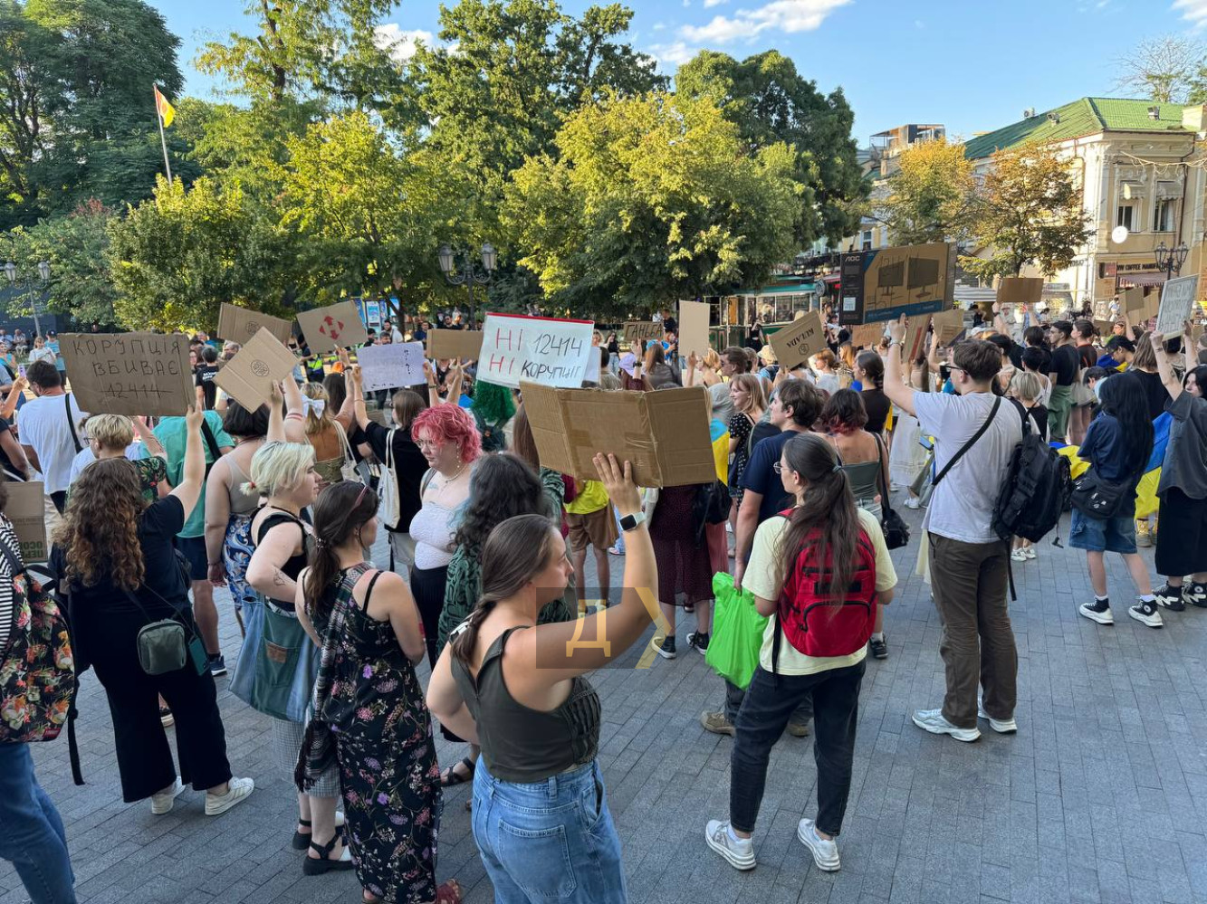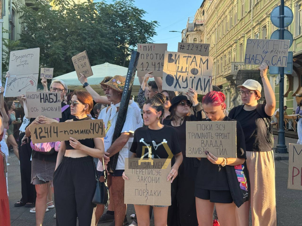 Майже тисяча одеситів вийшла на мітинг проти закону про фактичне позбавлення незалежності антикорупційних інститутів (НАБУ і САП). Як передає кореспондент «Думської», навпроти Міського саду, де зібралися переважно молоді люди, панує позитивна атмосфера. ОНОВЛЕНО О 20:30. Протестувальники рухаються в бік Біржової (раніше Думська) площі. ОНОВЛЕНО О 22:30. Мітинг тривав до пізнього вечора. Пам'ятник Пушкіну став імпровізованим постаментом для транспарантів. Мова про підписаний напередодні закон, який підпорядковує Генпрокурору (призначає глава держави) раніше незалежні від президентської вертикалі НАБУ і САП. «Мені небайдуже майбутнє моєї країни, майбутнє моїх онуків, майбутнє моїх дітей, і тому я тут. Ми скочуємося трохи не в той бік, від того, куди хотілося б, і за що ми боролися з 2014 року. І за що боремося зараз, за що воюють наші хлопці. Я говорю про свободу в своїй вільній країні», — каже учасниця акції Альона. «Не може бути успішної влади без системи стримувань і противаг. Ми не можемо змінити владу під час війни, але не повинні допустити зменшення європейської допомоги. Тому люди зібралися, щоб вимагати від президента повернути незалежність антикорупційних органів. В Україні узурпація влади не пройде. Як не пройшла вже в 2004 і 2013 роках», — пояснює свою участь в акції депутат Одеської міськради Петро Обухов. Протестувальники прийшли з саморобними транспарантами, зробленими з картонних коробок. Знайти два однакових було фактично неможливо. «Цей закон — це наступ на євроінтеграційний курс України. Нівелюються, навіть каструються основні антикорупційні органи, НАБУ і САП. Те, що їх хочуть підпорядкувати Генпрокурору — це прямий вплив центральної влади на ці органи. Ті справи, які вже в роботі «проти своїх» загальмуються, а противників влади — навпаки, прискоряться«, — розповів кореспонденту »Думської» депутат Одеської райради Сергій Сизоненко. Тим часом Зеленський, мабуть, оцінивши масштаб протестів, вже дає задню або удає. У вечірньому зверненні до нації президент пообіцяв направити до Ради новий законопроєкт, який забезпечить незалежність антикорупційних інститутів і одночасно захистить їх від російського впливу. «Ми домовилися, що керівники цих органів спільно запропонують план дій, план конкретних кроків, які можуть зміцнити силу права в Україні. Звичайно, всі чули те, що говорять люди в ці дні - в соціальних мережах, один одному, на вулицях. Це все не дарма. Проаналізували всі побоювання, всі аспекти того, що варто змінити і що має бути активізовано», — зазначив глава держави. За даними нардепа Олексія Гончаренка, який був одним з найактивніших критиків вчорашнього антиНАБУшного закону, новий законопроєкт Рада розгляне вже наступного тижня. Для цього нардепам доведеться повернутися з канікул. Оглядач «Думської» Віктор Босняк вважає, що президент відреагував не стільки на протести в Україні, скільки на те, як поставилися до його ініціатив у Європейському Союзі. «Там його бурхливо критикують, єврокомісари навіть заявили, що від незалежності антикорупційних інститутів залежить фінансова допомога Україні. Ймовірно, Зеленський розраховував, що на тлі війни його внутрішньополітичні викрутаси залишаться непоміченими за кордоном, а з опозицією він впорається, адже всі пасіонарії давно на фронті. Але, як бачимо, він і його ра