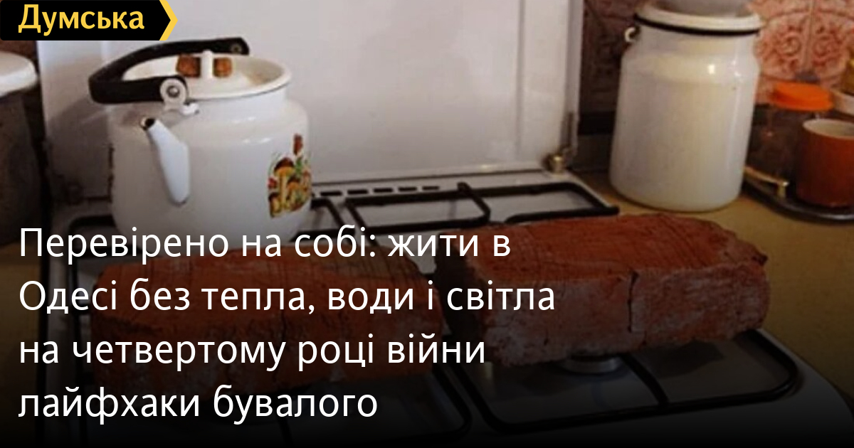 Перевірено на собі: жити в Одесі без тепла, води і світла на четвертому році війни лайфхаки бувалогоЧетверта військова зима стала черговим важким випробуванням для українців. Обстріли російських військ по українських ТЕЦ і підстанціях тривають. Відключення світла, води та тепла, прильоти ракет і шахідів у житлові будинки відбуваються майже щодня. «Думська» зібрала лайфхаки четвертого року війни, які допомагають вижити в цей непростий час. Підкреслимо відразу: всі описані способи перевірені особисто автором матеріалу. Як з'ясувалося за минулі чотири роки обстрілів, старий рецепт обклеювання вікон скотчем хрест-навхрест не дуже допомагає. Однак цілком працює інший спосіб обклеювання віконного скла зсередини антиударною плівкою, яку також рекламують як бронеплівку. Насправді до броні ця плівка відношення не має: скло під таким захистом все одно розбивається, але не розлітається по кімнаті. Втім, при потужній вибуховій хвилі обклеєні антиударною плівкою скла мають звичку вилітати всередину разом з рамою. Тому другим шаром захисту можуть стати щільно зашторені гардинами вікна, хоча б на ніч. Також від вибивання вікон вибуховою хвилею добре допомагає фіксація рам звичайними винними пробками. Вікно потрібно прикрити, але не замикати ручкою, а знизу щільно зафіксувати пробками. У такому випадку вибухова хвиля просто розчинить вікно. Звичайно, є ризик, що вона пошкодить щось всередині квартири, але поєднання трьох способів бронеплівки на склі, фіксації рам пробками в незамкненому режимі та щільних штор серйозно мінімізує пошкодження. Зрозуміло, все це не спрацює при занадто близькому прильоті або прямому попаданні Під час ворожих атак часто пошкоджуються особисті автомобілі найчастіше вибиваються вікна і лобове скло. У приватному будинку або закритому міському дворі від хвилі добре рятують трохи прочинені (на 1-2 сантиметри) вікна машини. Саме так паркують авто військові біля передової. У дворах багатоповерхівок рекомендуємо не ставити транспорт прямо під будівлями: на нього можуть впасти скло, уламки рам, цегла та облицювання. З тієї ж причини варто паркуватися якомога далі від дерев. До речі, припарковані вздовж будинків автомобілі, як правило, стають перешкодою для заїзду пожежних екіпажів і машин швидкої допомоги. У багатоквартирних будинках майже на кожному поверсі встановлені тамбурні двері. До війни це було захистом від злодіїв, зараз квартирні крадіжки, за статистикою поліції, стали рідкісними. Під час обстрілів і пожеж закриті тамбури часто стають пасткою для мешканців: швидко відкрити їх виходить не завжди або в паніці губляться ключі, або в темряві важко знайти замкову щілину. Тому краще тримати тамбурні двері відкритими після війни можна буде знову закрити на ключ. До речі, якщо наклеїти гірляндні стрічки на батарейках уздовж поручнів на сходах у під'їзді, при вимкненні світла це когось вбереже від падіння. Як показали чотири роки війни, запасів води багато не буває. Автор матеріалу зберігає воду в 100-літровій пластиковій бочці, яка стоїть у прохолодному і темному кутку квартири. Зберегти свіжість чудово допомагають жменя каменів кремнію і пара срібних сережок, кинутих у бочку ще у 2022 році. Воду додаємо в міру використання під час блекаутів і відключень по 20-30 літрів. Повністю воду в бочці не міняли з 2022 року, 