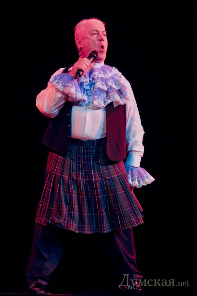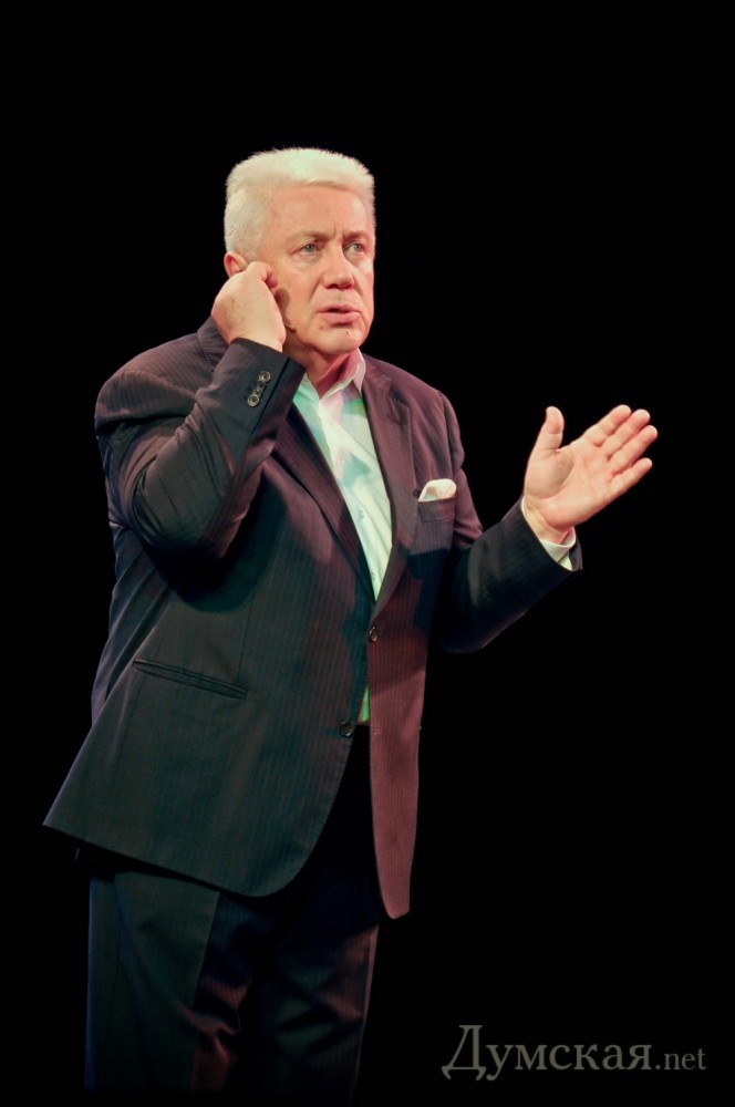 В Одессе Винокур стал Пьехой, рассказал, где Пугачева нашла Галкина и «одолжил» у Киркорова юбку (Фоторепортаж)Украинский театр. Сцена. Человек в костюме. Концерт Владимира Винокура в Одессе начался вполне традиционно: артист читал монологи, рассказывал анекдоты и, казалось, что это будет продолжаться вечно. Неожиданно он вспомнил о Филиппе Киркорове, на концерт к которому приходил накануне. А где Киркоров, там и Пугачева. «Она присмотрела себе мужа еще новорожденным, когда приходила в роддом проведать его маму – мы были все вместе: Кобзон, Лещенко, я, ну и она… Галкина они выбирали в роддоме уже вместе с Филиппом», — рассказывает одесситам Винокур. Потом артист вспомнил о Надежде Бабкиной, которая также ухватилась за «молодежный тренд» в личной жизни и вдруг на сцену неожиданно вышла сама артистка. Правда лишь пародийная. Были на сцене и «Алла Пугачева» с «Максимом Галкиным», и «Филипп Киркоров». За один вечер одесситы успели увидеть и послушать «Леонида Агутина», «Анжелику Варум», «Валерия Леонтьева», «Любовь Успенскую», «Стаса Михайлова, «Григория Лепса»… Кроме «метров» сцены молодые артисты играли и новых кумиров публики – Настю Каменских с Потапом, Тимати, Глюкозу, Жанну Фриске. Сам Владимир Винокур в этот вечер был и цыганом, и евреем, и украинцем, а еще – Пресняковым-младшим, Розенбаумом, Хворостовским, Крутым и даже Эдитой Пьехой. А в одном из номеров, пародируя Бориса Моисеева, Винокур вырядился… в юбку. Напомним, что накануне подобный номер, исполняя песню Ирины Билык, выкинул Филипп Киркоров. «Театр Пародий» Винокура существует уже 22 года. На одесские гастроли артисты привезли новую музыкальную программу «Смех без причины», которую не так давно представили в Москве. Уже сегодня это действо увидит Киев – концерт пройдет на сцене местного Дома офицеров. Автор фото: Юлия Городецкая