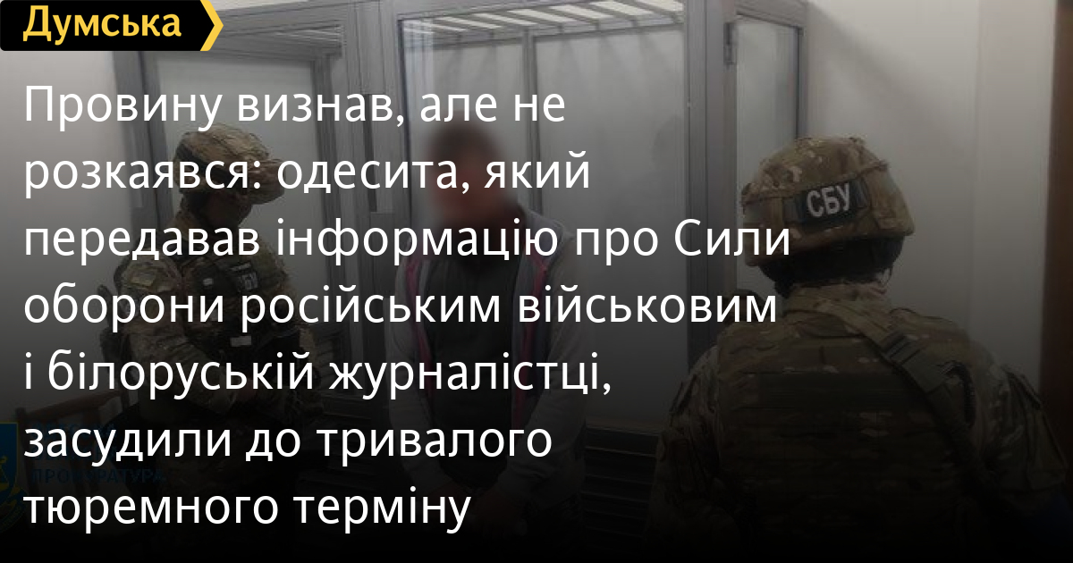 Провину визнав, але не розкаявся: одесита, який передавав інформацію про Сили оборони російським військовим і білоруській журналістці, засудили до тривалого тюремного терміну15 років позбавлення волі з кофіскацією майна — таке покарання призначив Приморський районний суд Одеси жителю міста Миколі Хмелю, який передавав росіянам дані про розміщення підрозділів Сил оборони. Як повідомляє кореспондент «Думської», судова колегія визнала одесита винним за частиною 2 ст. 111 і частиною першою ст. 263 КК України в державній зраді та незаконному поводженні з вогнепальною зброєю і боєприпасами. Чоловік розвідував в Одесі та області чисельність і маршрути переміщення особового складу, фортифікаційні споруди, їхнє маскування, місця зосередження бойової техніки та озброєння українських захисників. Крім того, він збирав у соцмережах і телеграм-каналах інформацію про волонтерів, які допомагають Силам оборони, одеситів, які займають і транслюють суспільству активну проукраїнську позицію. Також агент передавав російським кураторам, серед яких були чинні військовослужбовці рф, персональні дані відомих йому українських військових для подальшого їхнього знищення. Намагаючись максимально використати свій потенціал зі збору розвідувальної інформації, обвинувачений передавав білоруській журналістці Ксенії Лебедєвій дані про підготовку підрозділів Збройних сил України, Національної гвардії та Державної прикордонної служби України до оборони Одеської області. Передану інформацію, в подальшому, ворог використовував для нанесення ракетних ударів по регіону. Під час затримання у чоловіка виявлено та вилучено мобільний телефон, який використовувався у злочинній діяльності, та вогнепальну зброю з боєприпасами. У судовому засіданні Микола Хміль свою провину визнав у повному обсязі, але не розкаявся, залишившись вірним своїм переконанням. СМЕРТЬ РОСІЙСЬКИМ ОКУПАНТАМ! Помітили помилку? Виділяйте слова з помилкою та натискайте control-enter |