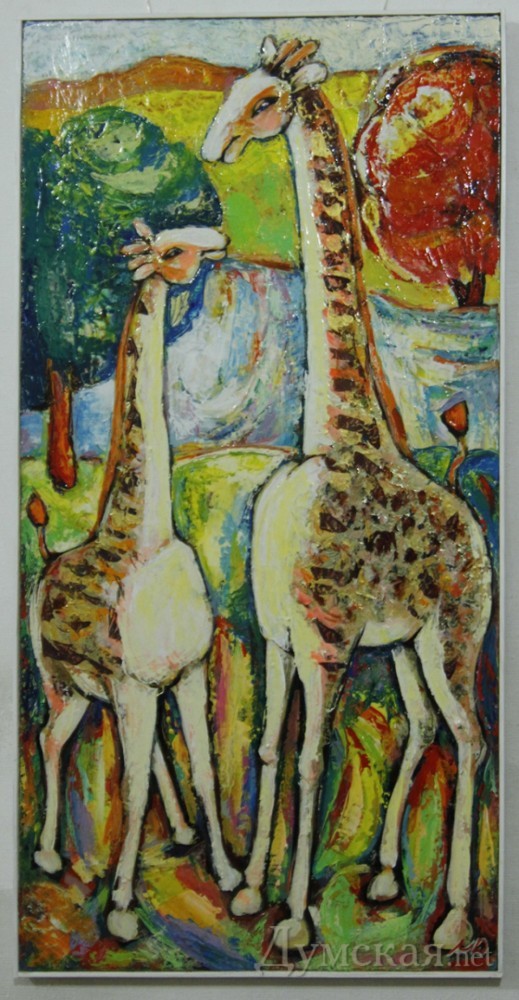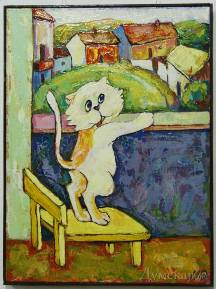 Сюжеты картин позитивны и бесхитростны: танцующие девушки, играющие музыканты, старички со скрипкой (верхом на ишаке или без оного), целующиеся влюбленные, сельские дворики. Столь же бесхитростна и живописная манера. Особенно «силен» Саша Торунян в анималистике: шок вызывают его одинаково круглоголовые коты и рыбы. В названиях автор тоже не изощряется, если на картине изображена ворона с орехом в клюве, то название может быть только «Ворона», а если кот (если это создание можно назвать котом) у окна, то соответственно — «Кот у окна». Согласно официальной биографии, Саша Аромович Торунян окончил Ереванское художественное училище. Но видимо, натура тянет его в сторону народного примитивизма. Впрочем, музейные работники, открывая выставку, сравнили Сашу Торуняна с классиком армянской живописи Мартиросом Сарьяном. «Я подумал: кто может быть ближе пути от зрителя к художнику, чем мастер с Соборки? – заявил директор художественного музея Виталий Абрамов. – Год назад «Желтые великаны» открылись как галерея современного искусства, но это же не значит, что здесь могут быть только концептуальные проекты. Художники с Соборки должны быть представлены на разных выставочных площадках города! Соборка, по сути, является зеркалом художественных вкусов и пристрастий широкого одесского потребителя искусства, этих художников следует изучать и выставлять. На Соборке надо обладать ярким художественным темпераментом и узнаваемым стилем. Там твою работу оценивают не критики в мягких, интеллигентных выражениях, там тебе все выскажут в лицо, сочно, не стесняясь…» В течение месяца можно посетить выставку в «Желтых великанах» и посмеяться вволю. Фото Владимира Андреева