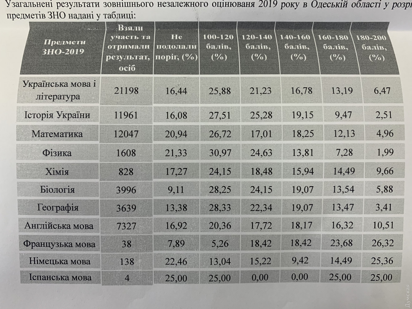 Одесская область «пасет задних» в национальном рейтинге ВНО-2019: всего 11 выпускников набрали 200 балловВ Одесском региональном центре оценивания качества образования подвели итоги ВНО 2019 года и рассказали о перспективе тестирования в 2020 году. Общее количество участников оценивания в 2019 году выросло в сравнении с предыдущим годом, но существенного прогресса в показателях качества знаний добиться не удалось. В Одесской области зарегистрировались более 22 тысяч участников ВНО (в 2018 году эта цифра была несколько меньше — 20651 человек). «Увеличение произошло в основном за счет присоединения профессионально-технических учебных заведений, колледжей и техникумов, — рассказал Анатолий Анисимов, директор Одесского регионального центра оценивания качества образования. — Самыми популярными предметами, как и в прошлом году, остаются украинский язык и литература, история Украины и математика». При этом, количество желающих сдать физику и химию сократилось. Большинство участников сдавали сертификационные работы на украинском языке (85 %). 14,5% участников сдали ВНО на русском и 0,5 % на молдавском. Как и в прошлом году, всего 11 человек в Одесской области (почти все из Одессы) набрали максимальное количество баллов — 200. Количество тех, кто не преодолел пороговый балл, уменьшилось примерно на 1-3 % по сравнению с прошлым годом по украинскому языку и литературе, математике, физике, географии и английскому языку. При этом увеличился процент тех, кто набрал высокие баллы. «Это небольшой рост, но динамика позитивная. К сожалению, показатели еще не достигли среднего результата по Украине. Двигаемся вперед, но очень медленно. Одесская область находится где-то во второй десятке в рейтинге областей», — рассказал Анатолий Анисимов. При этом Анатолий Анисимов заверил, что никаких изменений в программах подготовки или процедуре проведения ВНО 2020 года не будет: «Можно смело брать за основу программы 2019 года и готовиться. Все методические советы, образцы тестовых тетрадей разных годов, примеры заданий, тренировочные тесты — все это можно найти на сайте Украинского центра оценивания качества образования». СМЕРТЬ РОСІЙСЬКИМ ОКУПАНТАМ! Помітили помилку? Виділяйте слова з помилкою та натискайте control-enter |