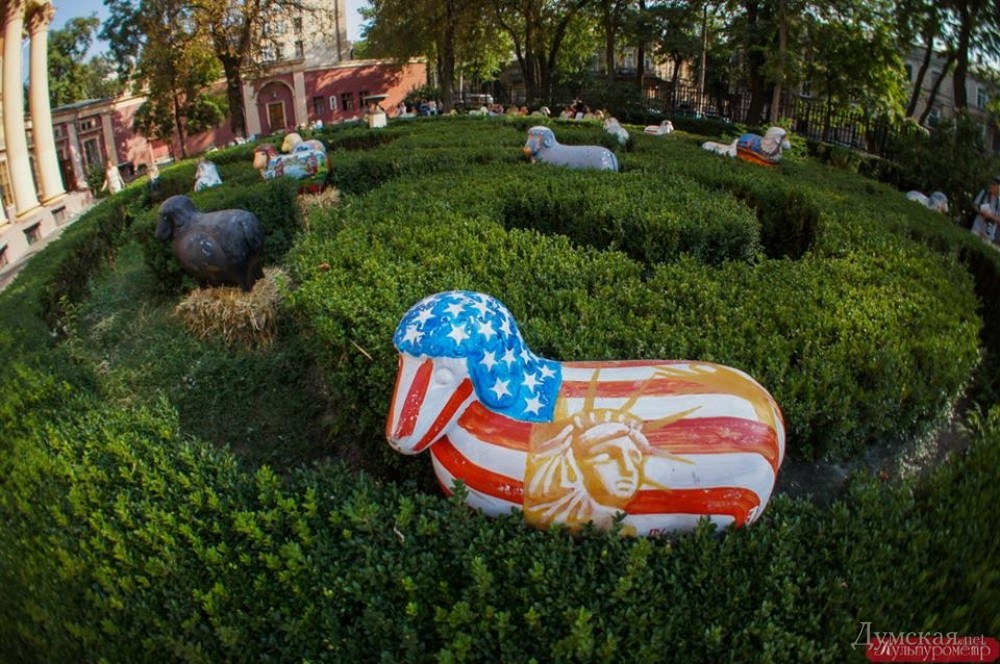 Во дворе Одесского художественного музея пасется отара интернациональных барашков
