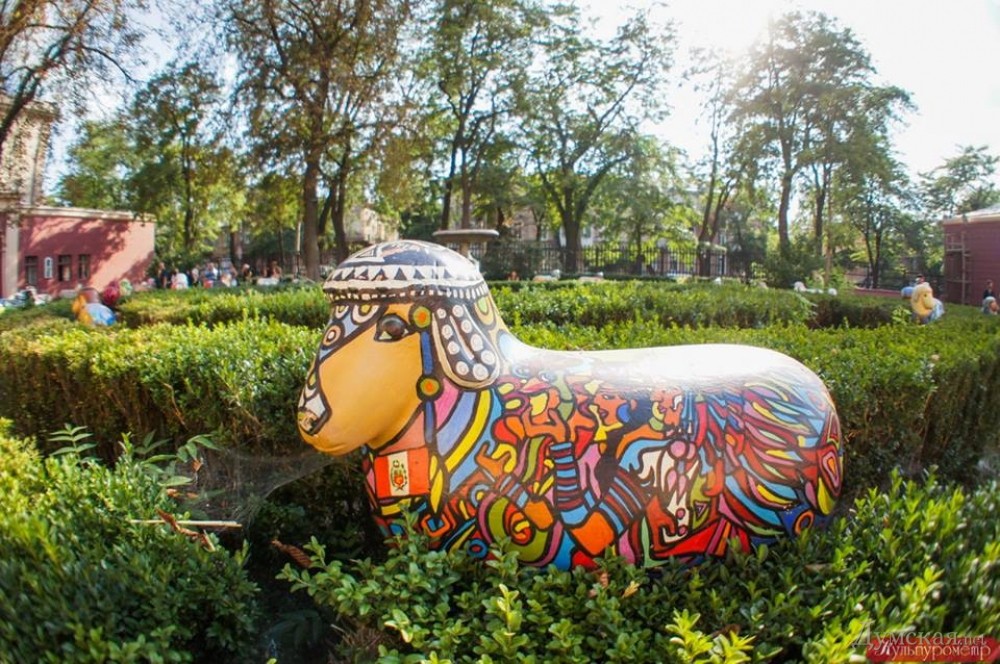 Во дворе Одесского художественного музея «пасется» отара из 34-х интернациональных премилых барашков. Все они сделаны из пластика, хоть и в натуральную величину и стилизованы под различные страны.