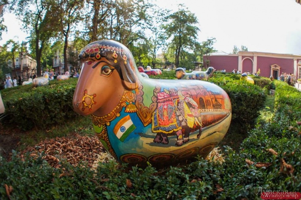 «На пластиковых барашках местные художники написали масляными и акриловыми красками картины, обозначающие разные страны, например, Украину, Израиль, Азербайджан. Один барашек – одна страна. Художники расписывали эти скульптуры во время пленера в Центре этнографического, зеленого, сельского туризма и семейного отдыха Тарутинского района, − пояснила заведующая выставочным отделом художественного музея Галина Богуславская. — Мы выставили их для того, чтобы порадовать глаз одесситов. А на самом деле в Пальмиру они прибыли для того, чтобы принять участие в праздновании Дня города. С ними проведут акцию, какую именно, пока остается тайной».