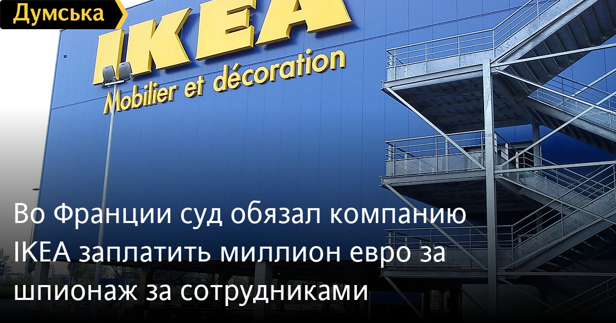 Во Франции суд обязал компанию IKEA заплатить миллион евро за шпионаж за сотрудникамиМиллион евро штрафа выписал Версальский суд филиалу шведской мебельной сети IKEA во Франции после того, как выяснилось, что его руководство следило за персоналом. Об этом сообщает ВВС. Так, экс-главу французского отделения IKEA Жана-Луи Байо приговорили к двум годам заключения условно. Также с него постановили взыскать около 50 тысяч евро. В целом на скамье подсудимых оказалось 15 человек, в том числе топ-менеджеры и менеджеры среднего звена, работающие в магазинах компании. Оказалось, что начальство компании организовало целую шпионскую сеть для слежки за сотрудниками. Подключали частную охранную фирму Eirpace, которая, в свою очередь, собирала личные данные у полиции. За передачу конфиденциальной информации к ответственности также привлекли четырех полицейских. В частности, таким способом проверяли соискателей, а также тех, кто уже был принят на работу. Руководство через детективов и полицию, в частности, пыталось выяснить, какой образ жизни ведут сотрудники и попадались ли они ранее на правонарушениях. Незаконному наблюдению подверглось около 400 человек. Описанные действия дочерняя компания шведского производителя мебели IKEA France совершала несколько лет подряд – с 2009 по 2012. Ее деятельность разоблачили журналисты, после чего профсоюзы обратились в суд. Организаторам шпионской системы вменяют незаконный сбор личной информации, ее использование и нарушение профессиональной конфиденциальности. Как отметила государственный обвинитель Памела Табардель, нелегальное наблюдение поставило под угрозу защиту частной жизни от массового наблюдения. СМЕРТЬ РОССИЙСКИМ ОККУПАНТАМ! Заметили ошибку? Выделяйте слова с ошибкой и нажимайте control-enter Новости по этой теме: 4 февраля 2022: Суд приговорил жителя Одесской области к общественным работам за кражу банки с пожертвованиями на лечение ребенка 12 января 2022: Харьковские станции метро ожидает масштабная проверка: в вестибюле подземки на площади Конституции рухнул потолок (фото) |