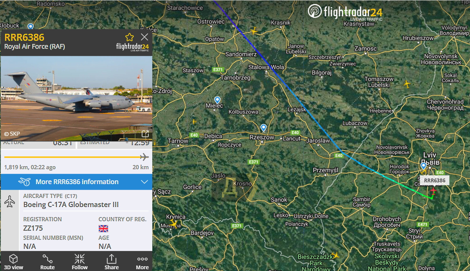Британский самолет с военной помощью Украине приземлился сегодня днем во львовском аэропорту имени Даниила Галицкого. В 13:00 военно-транспортный Boeing C-17A Globemaster III доставил несколько десятков тонн оборудования с авиабазы Брайз-Нортон. Это двадцатый по счету самолет от наших партнеров из Великобритании. СМЕРТЬ РОСІЙСЬКИМ ОКУПАНТАМ! Помітили помилку? Виділяйте слова з помилкою та натискайте control-enter |