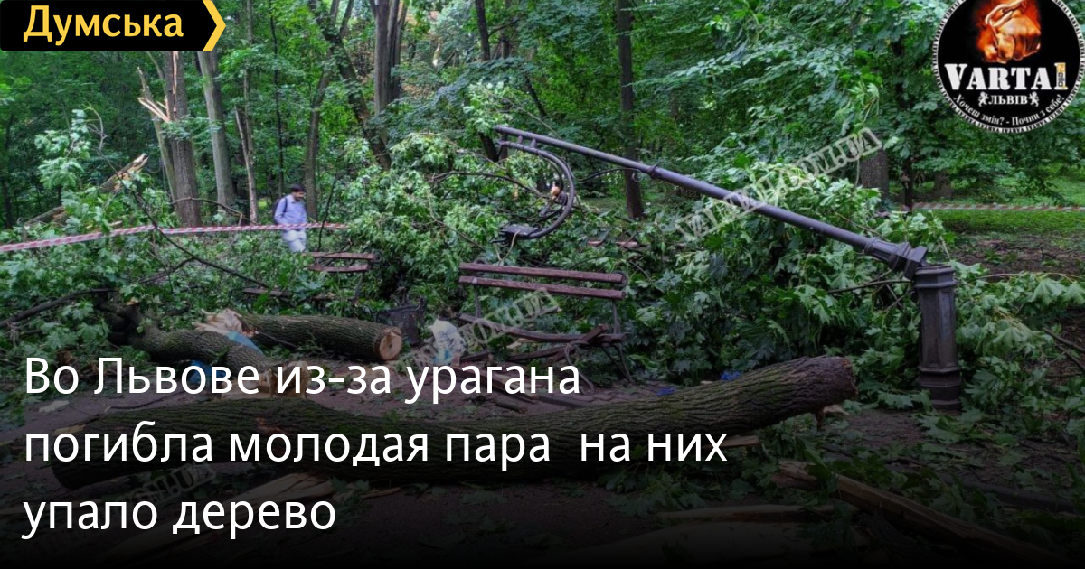 18-летняя девушка и 20-летний парень погибли в Стрыйском парке во Львове, из-за того что в результате урагана на них упало дерево. Об этом сообщила пресс-служба Львовского горсовета. Отмечается, что молодые люди сидели на лавочке. Погибшим юношей оказался курсант Национальной академии сухопутных войск им. гетмана Сагайдачного Андрей Свояк. «Парень проживал за пределами учебного заведения и в свободное от службы и обучения время находился на отдыхе в Стрыйском парке вместе с девушкой, которая, к большому сожалению, тоже погибла», — сообщил начальник академии Павел Ткачук.