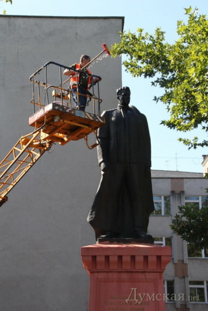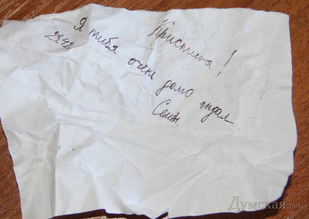 Во время «купания» одесского памятника Черняховскому найдено послание непунктуальной девушкеОдесские коммунальщики во время помывки памятников обычно находят только мусор, но одна из бумажек оказалась необычной запиской, сообщает пресс-служба Приморской райадминистрации. Памятник дважды Герою Советского Союза Ивану Черняховскому настолько высокий, что для его чистки пришлось привлекать вышку. Вероятно, поэтому девушка, которой было адресовано послание, не нашла его. «У ног памятника я нашла бумажку, сложенную в четверо, придавленную камушком. Она, наверное, давно лежала, я ее развернула, а там послание чей- то любимой девушке», — рассказала дворник ЖКС «Фонтанский» Валентина. На клочке бумаги нет даты, но есть время — 23:42. Очевидно, в этот момент терпение некого Семена лопнуло, и он не смог дождаться свою девушку Кристину. Отметим, что всего ко Дню города в Приморском районе коммунальным службам предстоит помыть 249 объектов монументального искусства. СМЕРТЬ РОСІЙСЬКИМ ОКУПАНТАМ! Помітили помилку? Виділяйте слова з помилкою та натискайте control-enter |