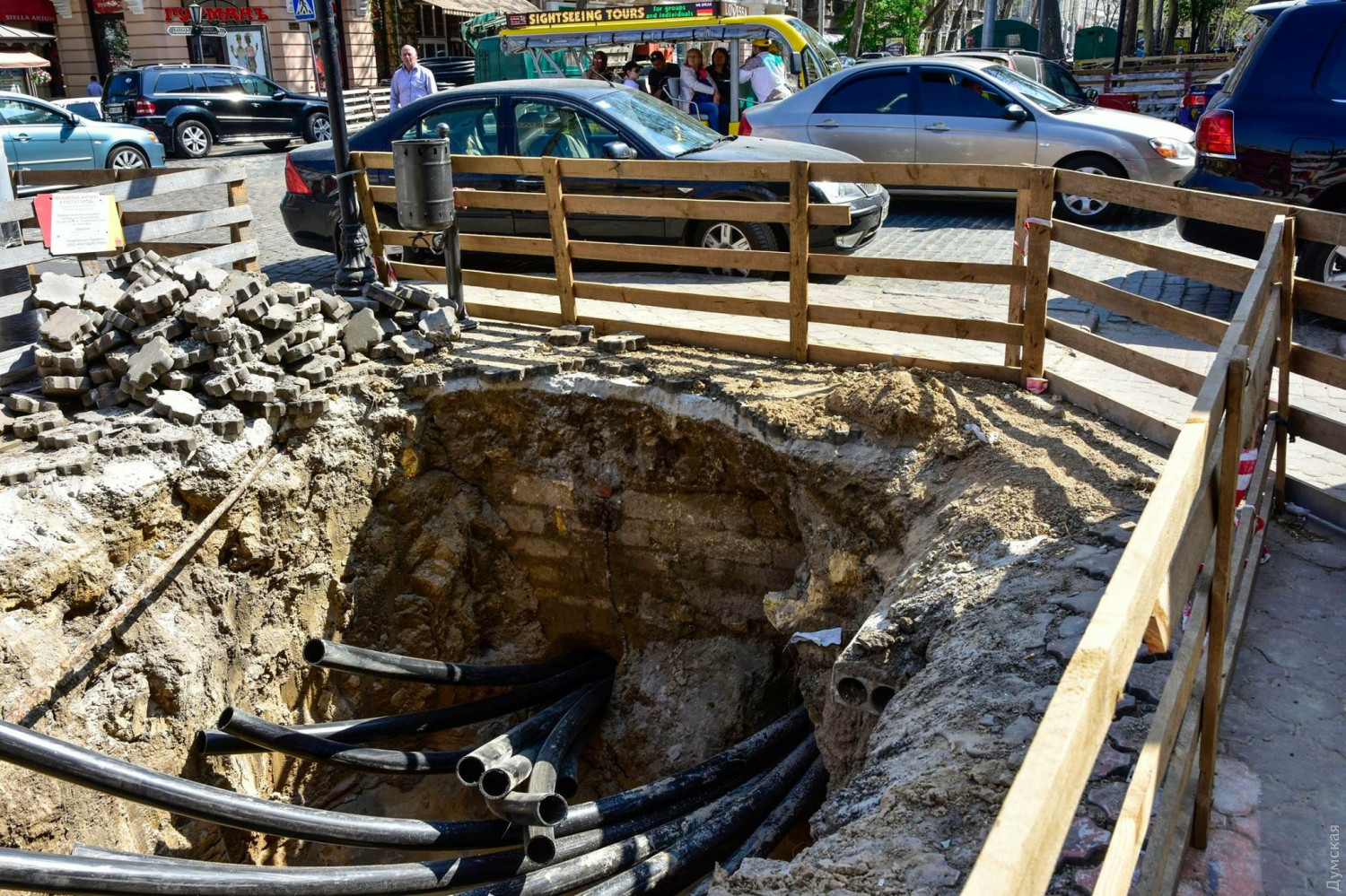 Посреди перекрестка Дерибасовской и Ришельевской под землей нашли старинную кладку