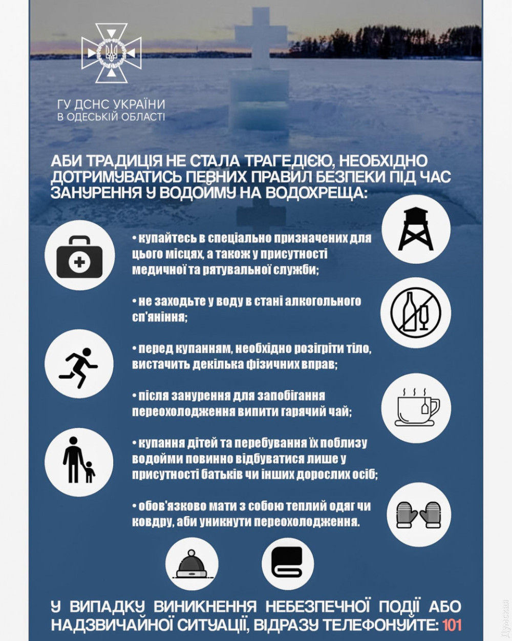 Водохреща в Одесі: де пройде і як підготуватися до традиційних купаньВодохресні купання за новоюліанським календарем офіційно пройдуть в Одесі 6 січня на Ланжероні, а під час святкування поліція посилить патрулювання. Рятувальники нагадують, що безпечними для купання є тільки спеціально облаштовані місця, де будуть чергувати усі екстрені служби. Не слід вживати алкоголь, чіпати підозрілі предмети, а у випадку повітряної тривоги — перейти в укриття. Як і минулого року, офіційне освячення води пройде на пляжі Ланжерон біля Двох шарів о 10:00, повідомив секретар Одеської єпархії протоієрей Теодор Оробець. Незважаючи на теплу погоду, лікарі радять одеситам не занурюватися в зимове море без підготовки. Як розповіла кореспонденту «Думської» кандидат медичних наук, терапевт Еліна Бережна, заходити в холодну воду протипоказано вагітним, людям із важкими серцево-судинними захворюваннями, стенокардією, високим тиском, цукровим діабетом, захворюваннями легень, а також після нещодавно перенесених вірусних інфекцій. «Купатися потрібно тільки в обладнаному поручнями місці, і де є медичні працівники. Бажано трішки розігрітися, зробити легку зарядку. Не йти босоніж по холодному піску: взуття потрібно зняти безпосередньо перед заходом у воду. Не можна пірнати вниз головою — тільки повільно заходимо, можна триразово зануритися з головою, але не більш ніж на одну хвилину, навіть якщо людина натренована. Виходимо — й одразу ж розтираємося сухим рушником. Одягнули теплий одяг — йдете в теплу машину або тепле приміщення пити гарячий чай», — радить Еліна Бережна. СМЕРТЬ РОСІЙСЬКИМ ОКУПАНТАМ! Помітили помилку? Виділяйте слова з помилкою та натискайте control-enter Новини по цій темі: |
