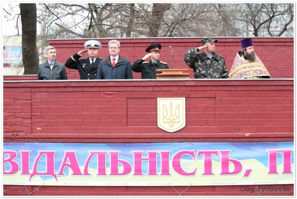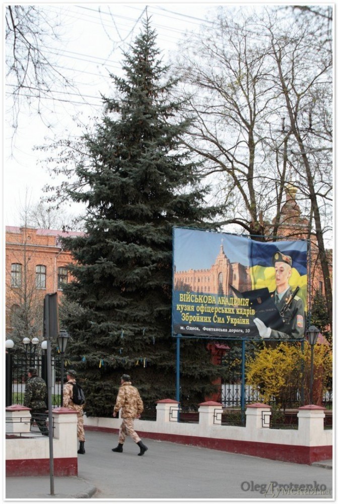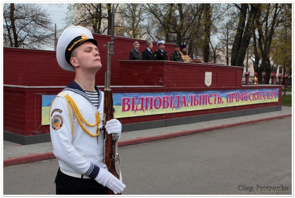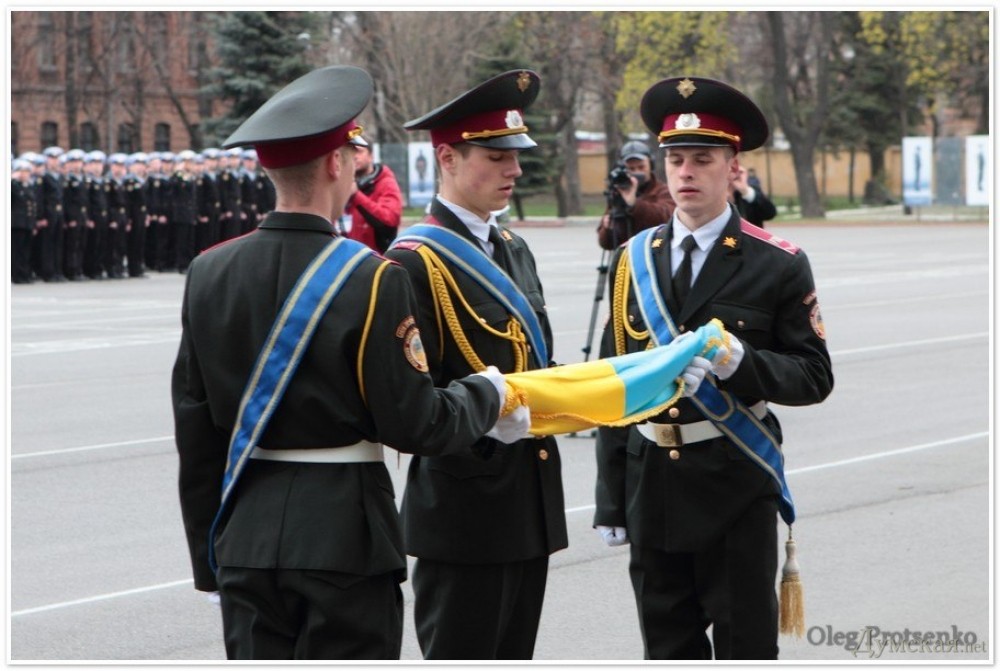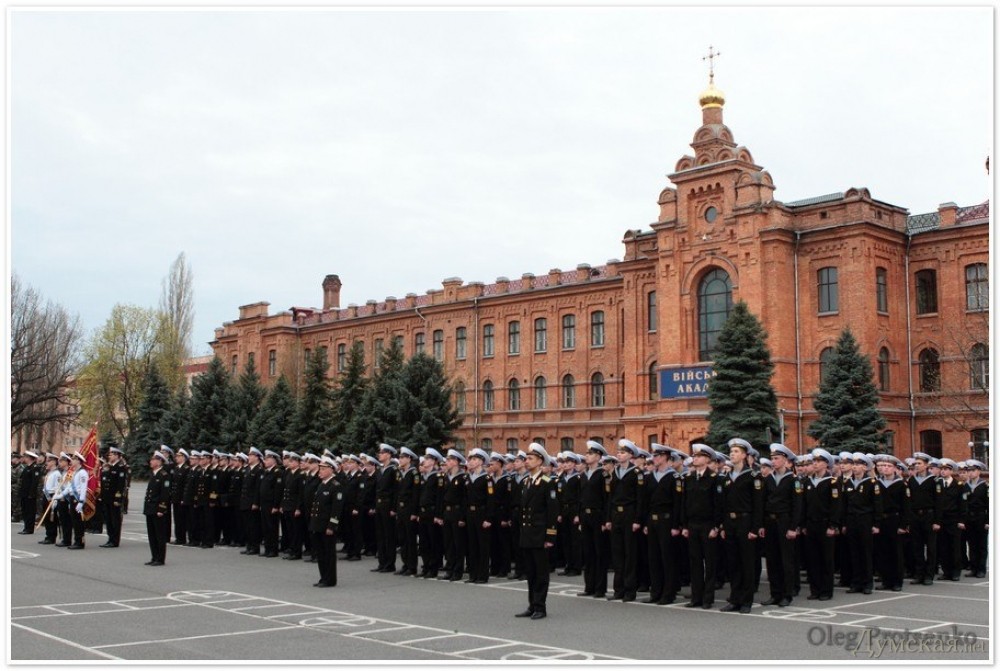 Сегодня утром в Военной академии Одессы состоялось торжественное построение с участием курсантов и офицеров Севастопольской академии Военно-морских сил имени Нахимова.