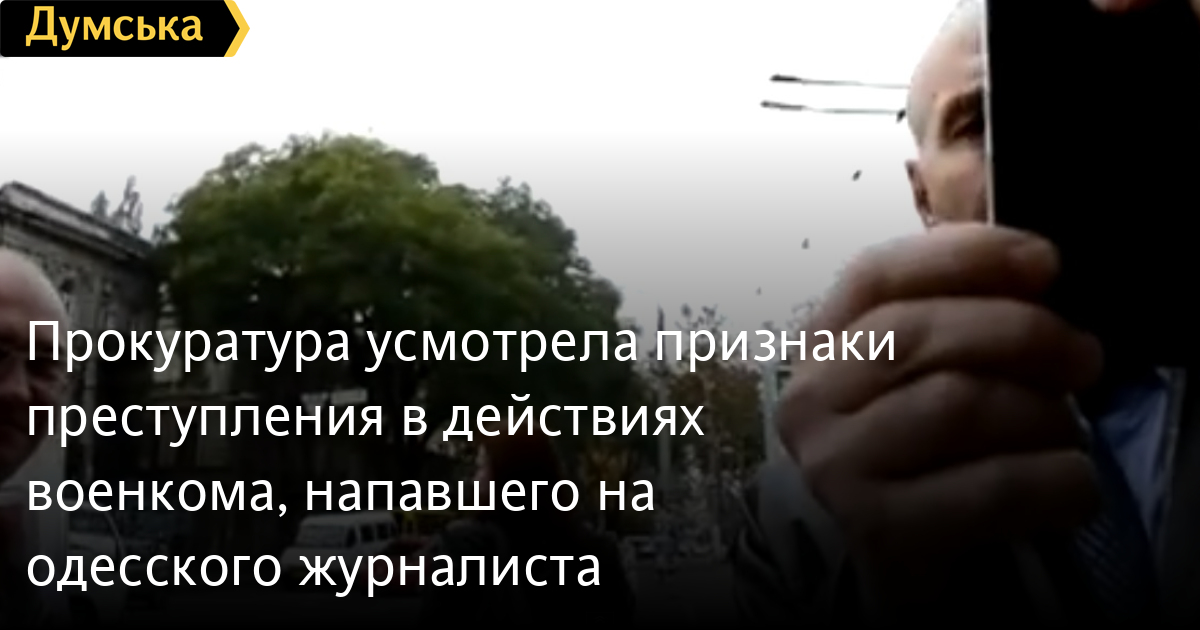 Прокуратура усмотрела признаки преступления в действиях военкома, напавшего на одесского журналистаОдесская прокуратура по надзору за соблюдением законов в военной сфере усмотрела в нападении военкома Олега Лобана на журналиста Андрея Колисниченко признаки преступления. Об этом говорится в ответе, который журналист получил от надзорного ведомства. Согласно документу, в действиях Олега Лобана и его коллеги, начальника второго отделения Приморского РВК Александра Светлицкого есть признаки уголовного преступления, предусмотренного частью 1 статьи 171 УК (препятствование журналисткой деятельности). При этом, согласно ст.216 УПК, дело передано в Приморскую районную прокуратуру города Одессы и Приморский райотдел милиции. Напомним, инцидент произошел 14 октября у здания Приморского военкомата. Корреспондент портала «Одесса. Комментарии» увидел на улице акцию протеста движения «Искра», которое обвиняло сотрудников военкомата в коррупции. В конце акции Олег Лобан вместе с Александром Светлицким затащили журналиста в здание и потребовали, чтобы милиционеры отобрали у него фотоаппарат. Свои действия они аргументировали тем, что журналист «снимал военный объект». СМЕРТЬ РОССИЙСКИМ ОККУПАНТАМ! Заметили ошибку? Выделяйте слова с ошибкой и нажимайте control-enter |
