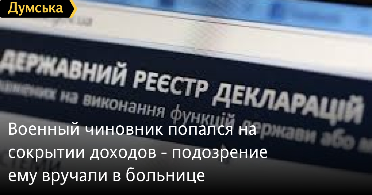 Военный чиновник попался на сокрытии доходов — подозрение ему вручали в больницеСотрудники военной прокуратуры сообщили о подозрении должностному лицу Вооруженных сил Украины — руководителю одного из квартирно-эксплуатационных отделов. Его подозревают в декларировании недостоверной информации (ст. 366-1 УК Украины). Как сообщил заместитель военного прокурора Южного региона Украины Роман Немашкало, от вручения подозрения военный чиновник прятался в больнице. Военнослужащий подозревается в том, что не внес в ежегодные деклараций за 2017, 2018 и 2019 годы объекты недвижимого и движимого имущества стоимостью почти 6 миллионов гривен — это имущество принадлежит его гражданской жене, которая не находится в браке с декларантом, но совместно с ним проживает. Д СМЕРТЬ РОССИЙСКИМ ОККУПАНТАМ! Заметили ошибку? Выделяйте слова с ошибкой и нажимайте control-enter |