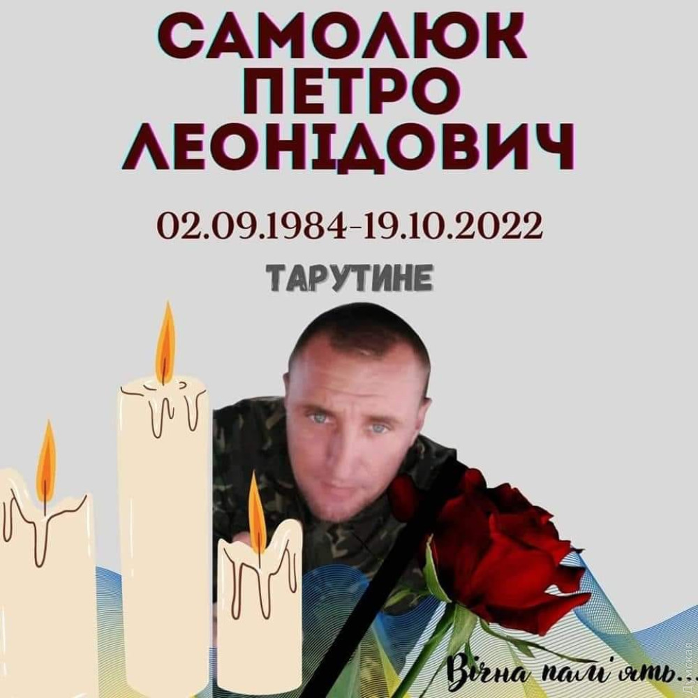 38-річний мешканець Тарутино Петро Самолюк 19 листопада загинув у Херсонській області. У Болградській районній державній адміністрації повідомили, що військовослужбовець потрапив під ворожий обстріл у районі села Нова Кам'янка у Бериславському районі. У загиблого залишилися мати, дружина та двоє дочок. «Зберігаючи рідну землю, захищаючи свободу, він віддав найцінніше – своє життя!» — зазначили в РДА. Вічна слава і памʼять герою! СМЕРТЬ РОСІЙСЬКИМ ОКУПАНТАМ! Помітили помилку? Виділяйте слова з помилкою та натискайте control-enter |