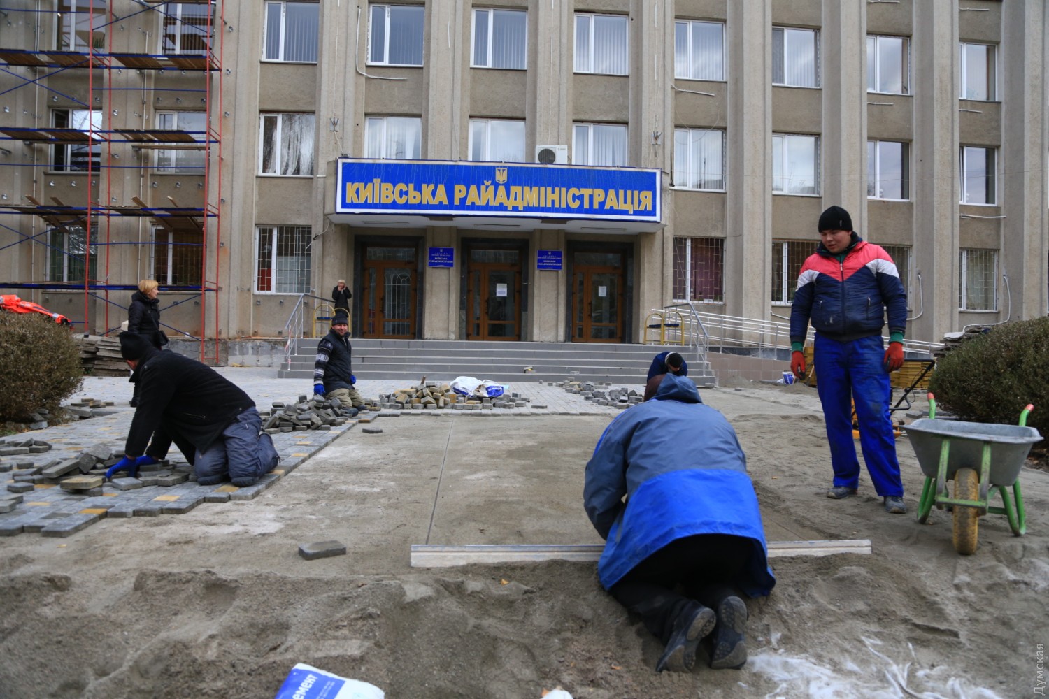 В Одессе райадминистрации делают новый желто-черный фасад, а территорию вокруг устилают плиткойКиевскую райадминистрацию Одессы усиленно ремонтируют. Здание на углу Королева и Тополевой одели в леса, а территорию вокруг устилают вместо старых бетонных плит новенькой плиткой. На объекте трудится примерно 30 рабочих. Внешний вид здания изменится: стены утепляют, и оно станет желто-черным. Интересно, что тендер по этому ремонту не объявляли, и непонятно, кто делает работы и за какой счет. СМЕРТЬ РОСІЙСЬКИМ ОКУПАНТАМ! Помітили помилку? Виділяйте слова з помилкою та натискайте control-enter |