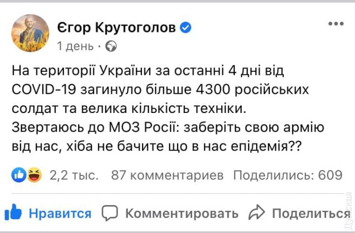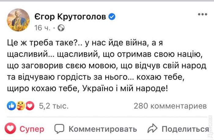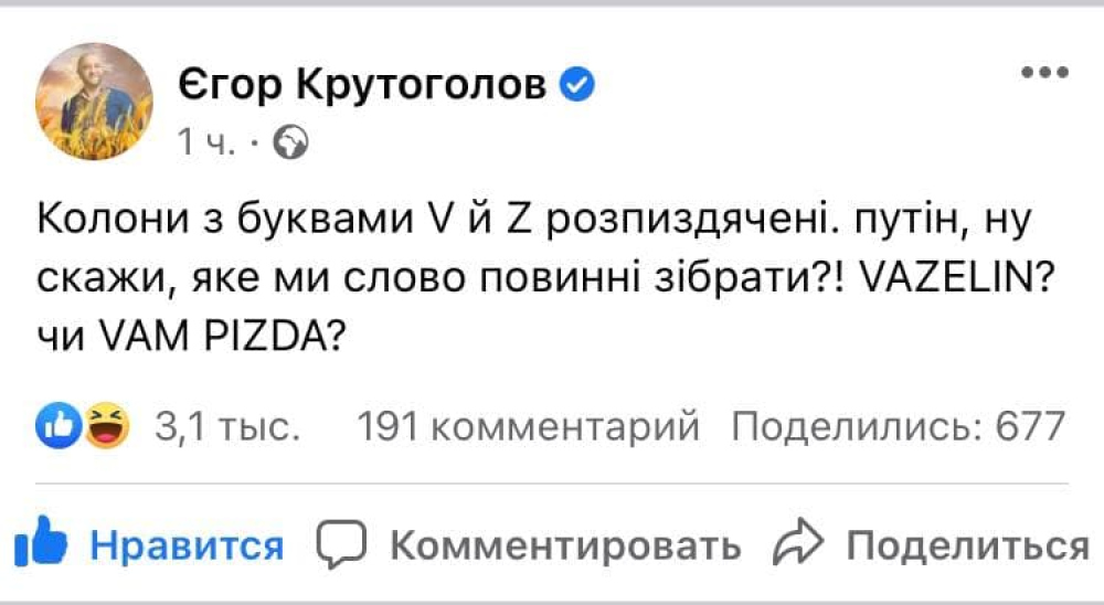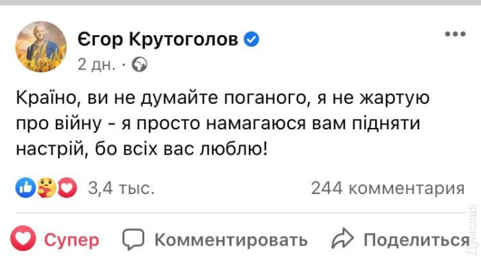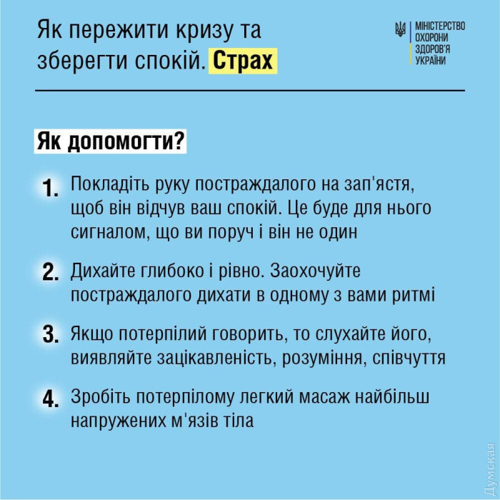 Волонтерство, физические упражнения, обнимашки и крепкая шутка: как справиться с паническими атаками и поднять боевой духВойна — страшное время. Кроме физической смерти и увечий, военные действия наносят тяжелейшие психологические травмы. Даже те, кто сейчас далеко от взрывов, находятся в зоне риска, что уж говорить о тех наших земляках, кто вынужден часами прятаться в бомбоубежищах, обнимая членов своей семьи и молясь, чтобы «братская» помощь российских нацистов не прилетела на их улицу. Министерство здравоохранения Украины опубликовало полезную информацию о том, как пережить кризис и сохранить спокойствие. По словам экспертов, чтобы быть готовым преодолеть любой кризис самостоятельно, а также уметь оказать психологическую поддержку другим, необходимо руководствоваться следующими правилами: - будьте рядом с человеком, нуждающимся в помощи. Оставаясь рядом, вы можете помочь восстановить чувство уверенности и безопасности; - активно слушайте. Важно внимательно выслушать человека, чтобы помочь ему пережить травмирующее событие; - уважайте и признайте чувства человека; - выявите заботу и окажите практическую помощь. К примеру, полезно будет связаться с кем-то, кто может побыть с пострадавшим. Во время кризисной ситуации человек может чувствовать или переживать страх, ступор, плач, истерику, паническую атаку, нервную дрожь, агрессию. Для каждого из этих состояний разработана собственная система действий, которые помогут пережить этот период. Как уже писал наш главный редактор, благодаря соцсетям и огромному потоку противоречивой, пугающей информации почти все население нашей страны испытывает стресс, сопоставимый с тем, который прямо сейчас бьет по психике солдат на передовой. Психологи отмечают несколько состояний, вызванных влиянием продолжительного стресса. Эйфория и праведная злоба сменяется истощением, тревогой и апатией. Мозг вынужден защищаться от эмоционального прилива. Чтобы избавиться от этих симптомов, психологи рекомендуют несколько действий: - Обязательно спать. Если необходимо, то принимать для этого успокоительное. - Не забывать пить воду, так обезвоженный организм не может бороться со стрессом. - Установить себе график пользования соцсетями и делать паузы от чтения новостей; - Не забывайте про физический контакт с родными и близкими. Обнимашки творят чудеса! Еще один хороший способ борьбы с постоянным эмоциональным напряжением – это что-то делать. Подключайтесь к работе волонтерских центров, к строительству укреплений и баррикад, если есть соответствующая специализация – оказывайте психологическую помощь, юридические консультации, медицинские услуги. Не забывайте о домашних делах, уборке – это отвлекает от плохих мыслей и помогает не опускать руки. Ну и напоследок, прекрасное средство от стресса – юмор. Хорошая, смачная шутка, меткий мем помогает посмотреть на проблему, кажущуюся неразрешимой под другим углом, отстраниться, выдохнуть. Подпишитесь на ФБ-аккаунт Егора Куртоголова из Дизель-студио. Шутки Егора патриотичны и жизнеутверждающие. Начинайте с них утро и все будет хорошо. Коли ми переможемо, треба обов'язково зняти комедію про цю війну. Так, саме комедію. Повний метр, який побачить увесь світ. І про бандераавтомобіль, якому позаздрив би Бетмен. І про гопніків, які захопили голіруч ворож